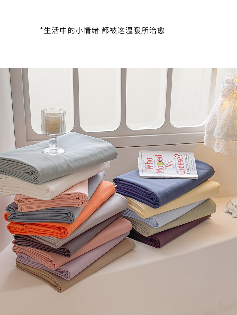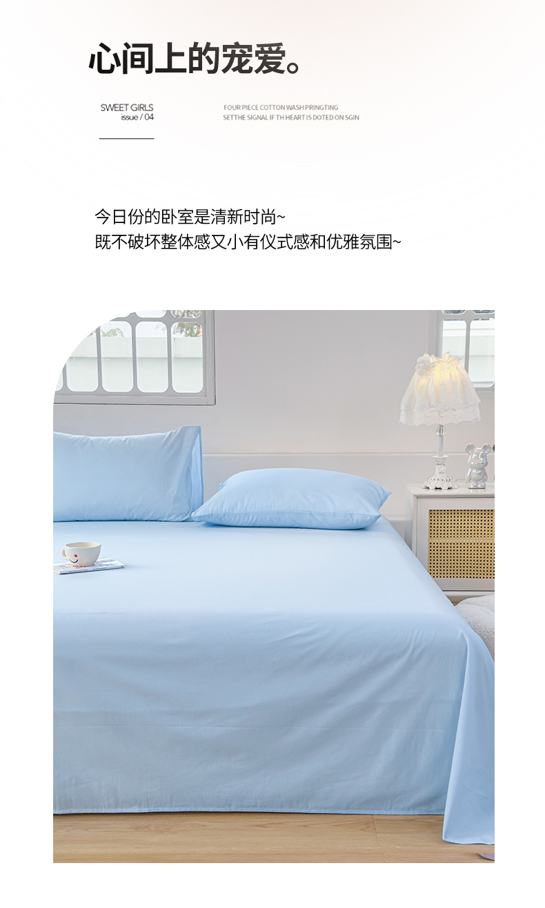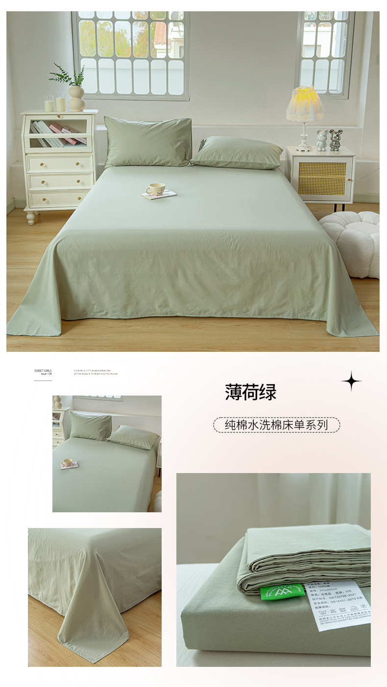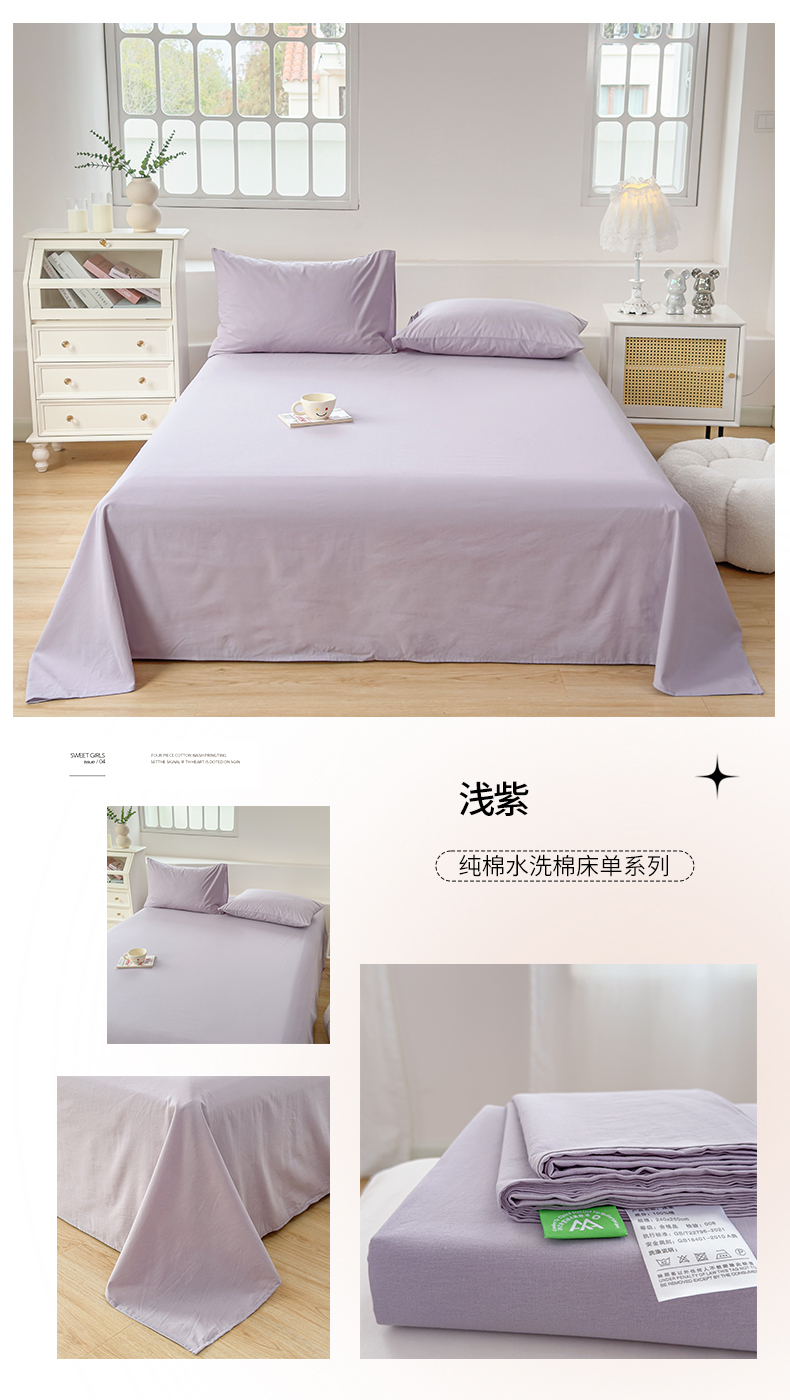 (总)柠萌家居 2026年新款全棉A类母婴级水洗棉纯棉床单纯色系列单品,宝石蓝,薄荷绿,本白,豆沙,繁星蓝,粉紫,枫叶红,高级灰,卡其,马丁桔,摩卡,奶黄,浅粉,浅灰,浅蓝,浅紫,星空蓝,中灰,紫罗兰,组合图仅供参考不可下单