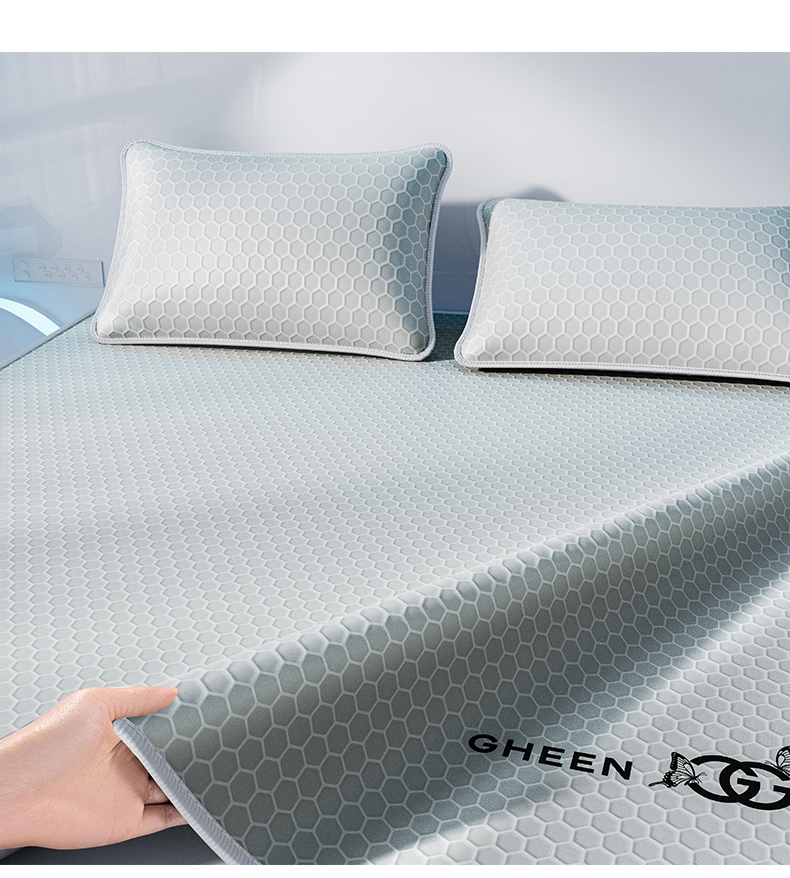 • 91家纺网 家纺一手货源 找家纺 好福居 2026新款蜂窝科技凉感席-床笠款 蜂窝款-浅灰床笠款