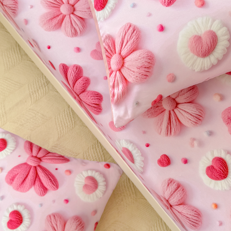 (总)2026新款5D专版数码印花凉感枕套,花海,爱心蝴蝶结,牛油果,松鼠,太阳花,熊猫宝贝