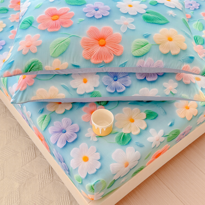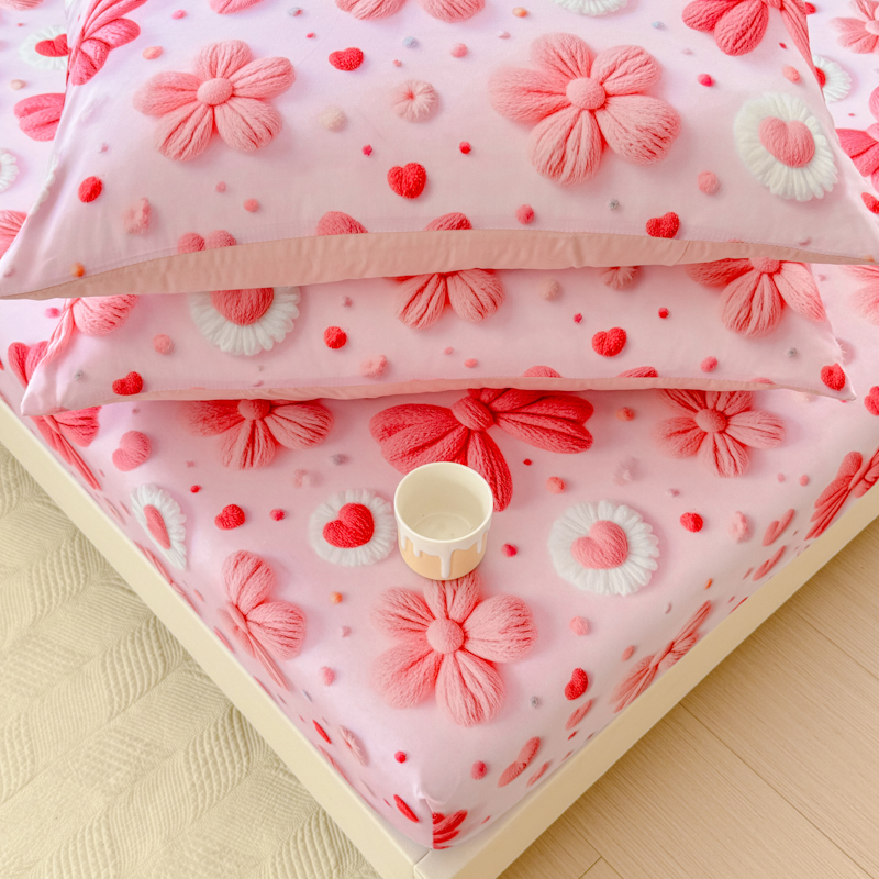 (总)2026新款5D专版数码印花凉感磨毛单床笠 床笠三件套,花海,爱心蝴蝶结,牛油果,松鼠,太阳花,熊猫宝贝
