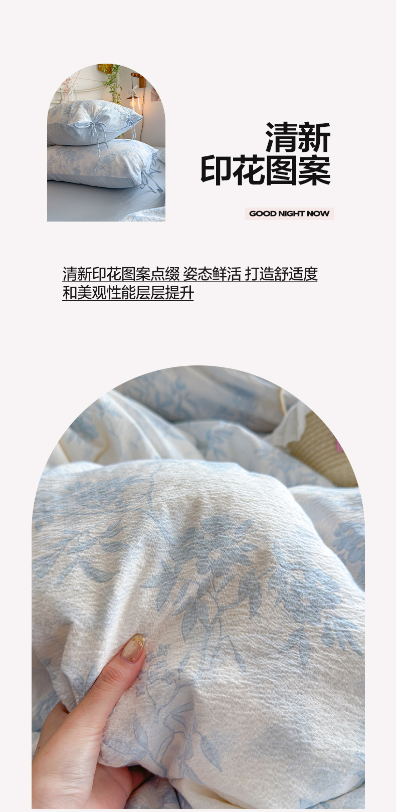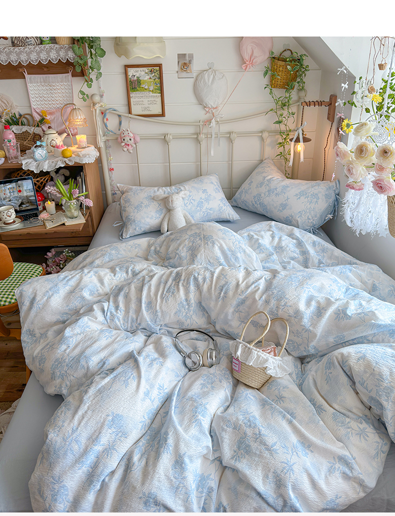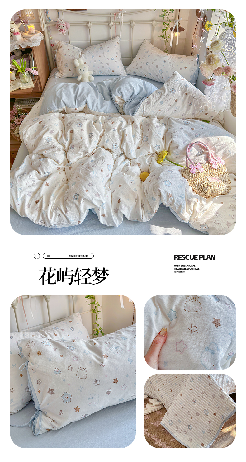 当前位置: 91家纺网 > 商品网购 > 床品套件 > 四件套 > 双层纱四件套 > 优选 2026新款小清新直播热卖款云感双层纱木棉床盖四件套系列 冰菱花