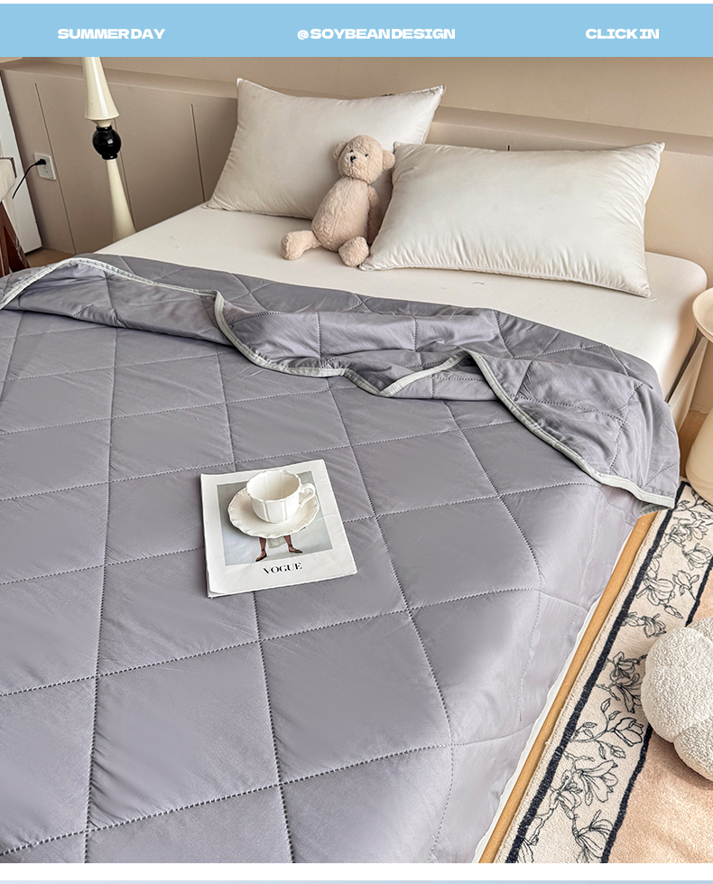 商品名称:薇玛仕 2026跨境电商外贸款 纯色亲肤磨毛超声波夏凉被空调被 月光灰