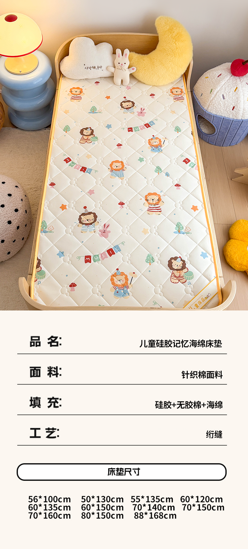 当前位置: 91家纺网 > 商品网购 > 床垫/床褥 > 普通床垫 > 嗨生活 2026新款儿童硅胶记忆海绵床垫 音乐小狮