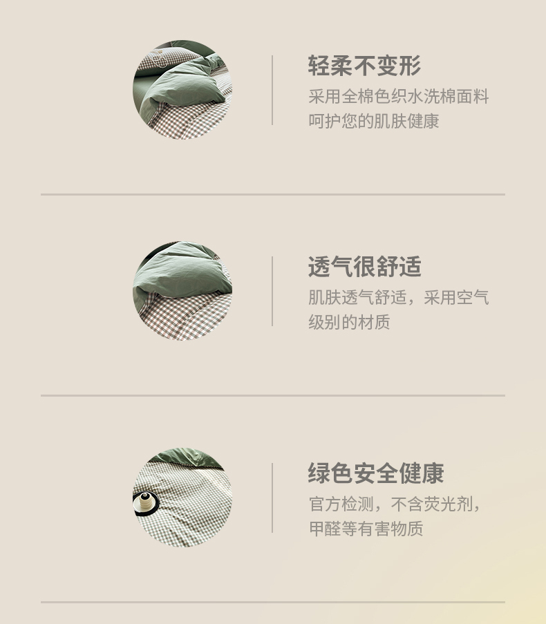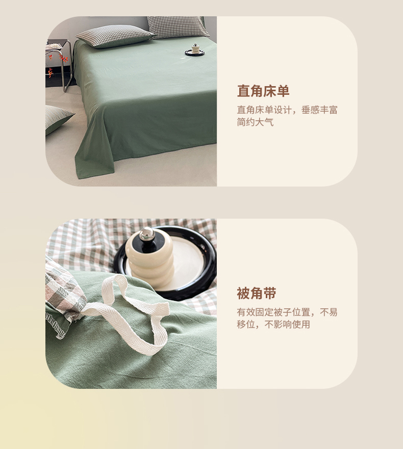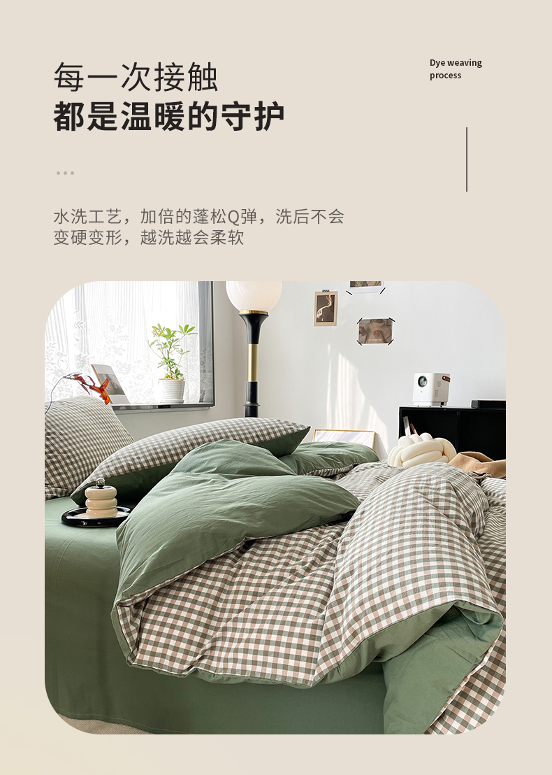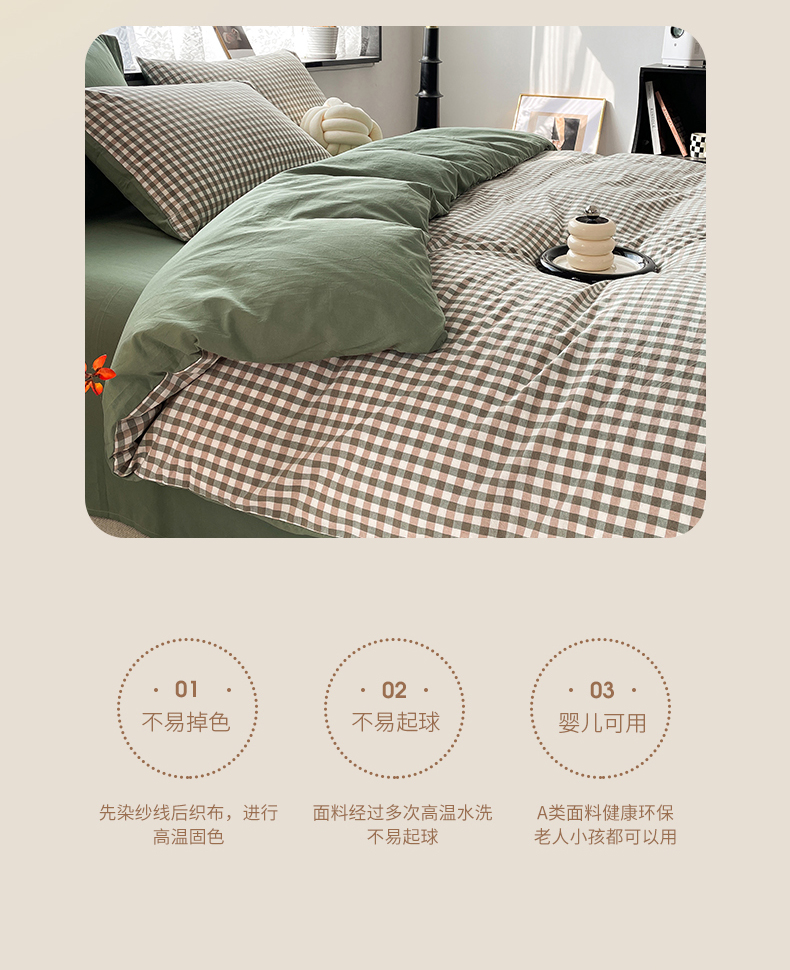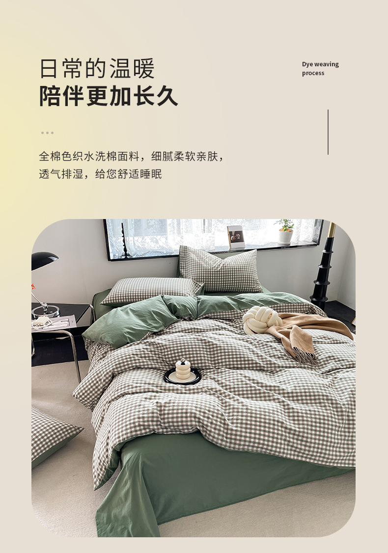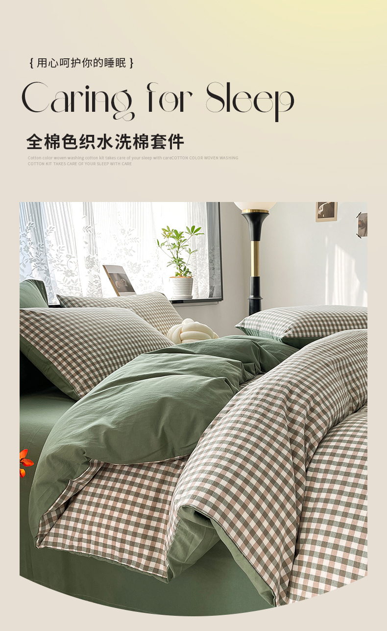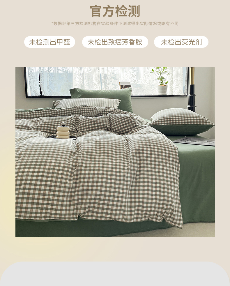 当前位置: 91家纺网 > 商品网购 > 床品套件 > 四件套 > 全棉普通四件套 > 春皖家纺 2026新款色织AB版水洗棉三件套四件套单品系列(四件套风格一) 素雅-绿格