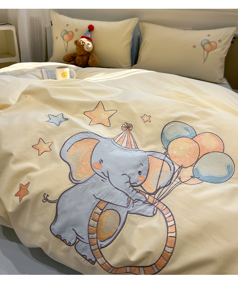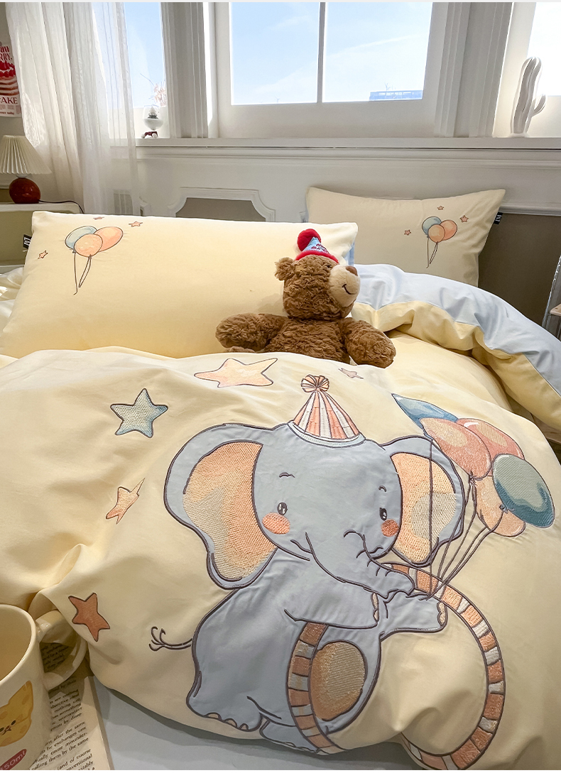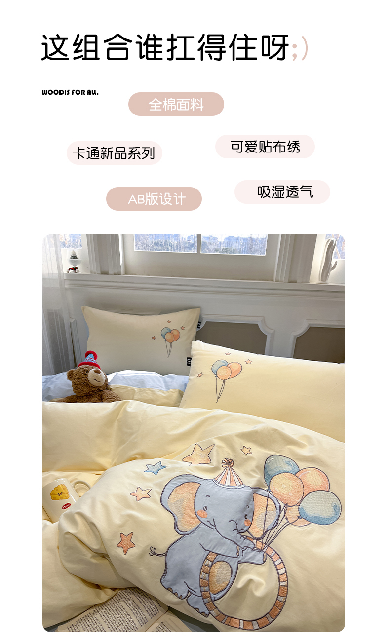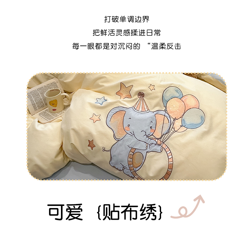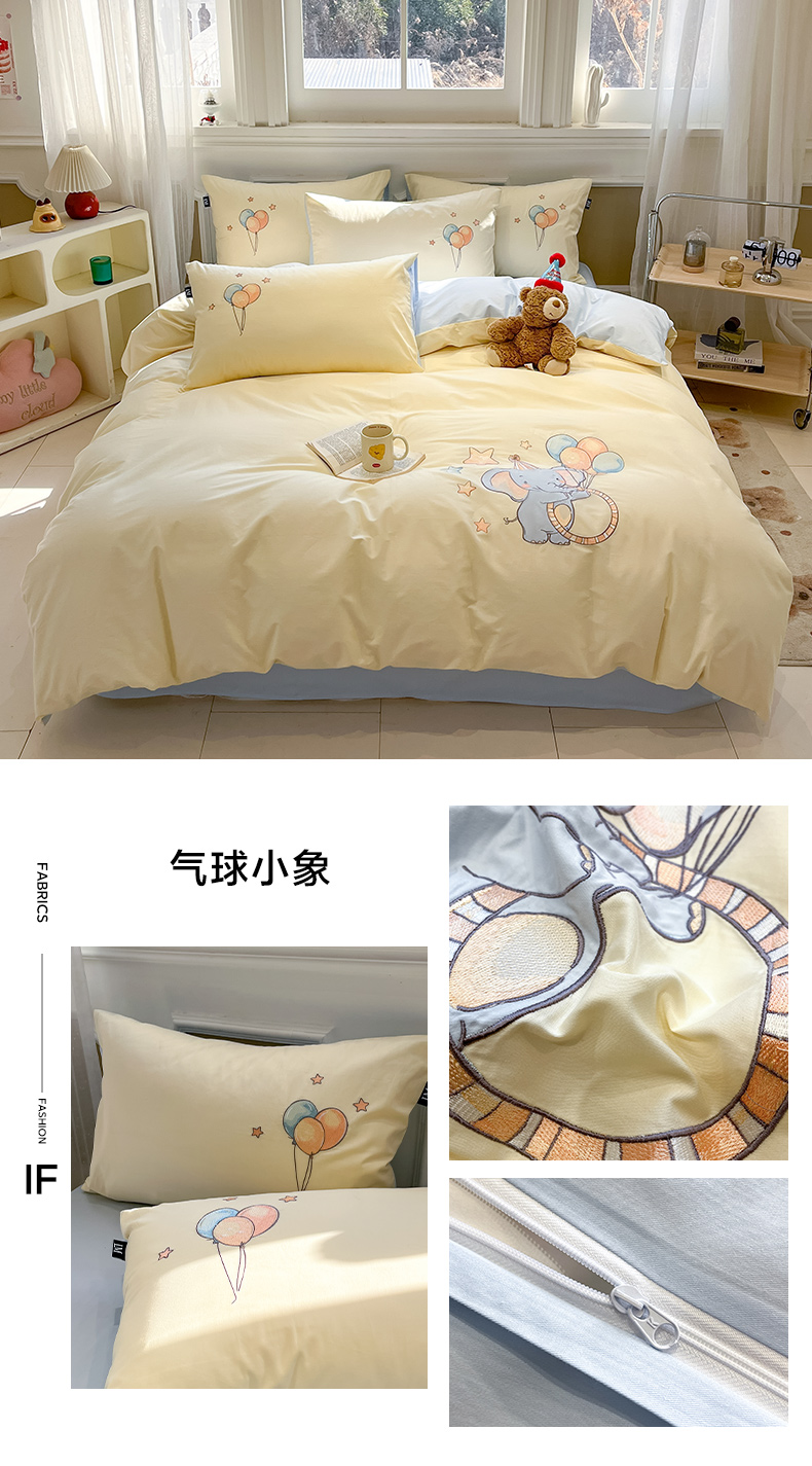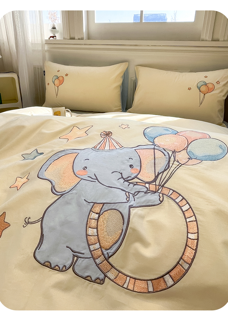 当前位置: 91家纺网 > 商品网购 > 床品套件 > 四件套 > 全棉普通四件套 > 乐美家纺 2026春夏新款软萌全棉纯棉贴布绣系列四件套 气球小象