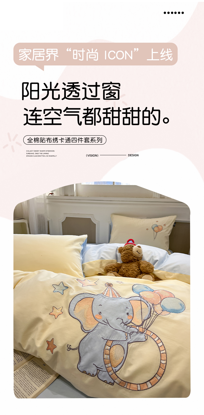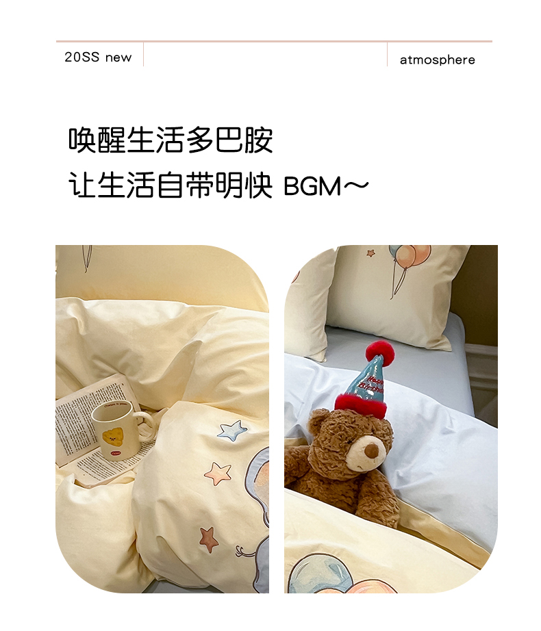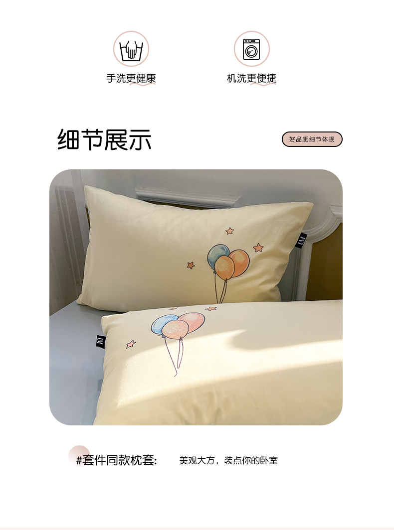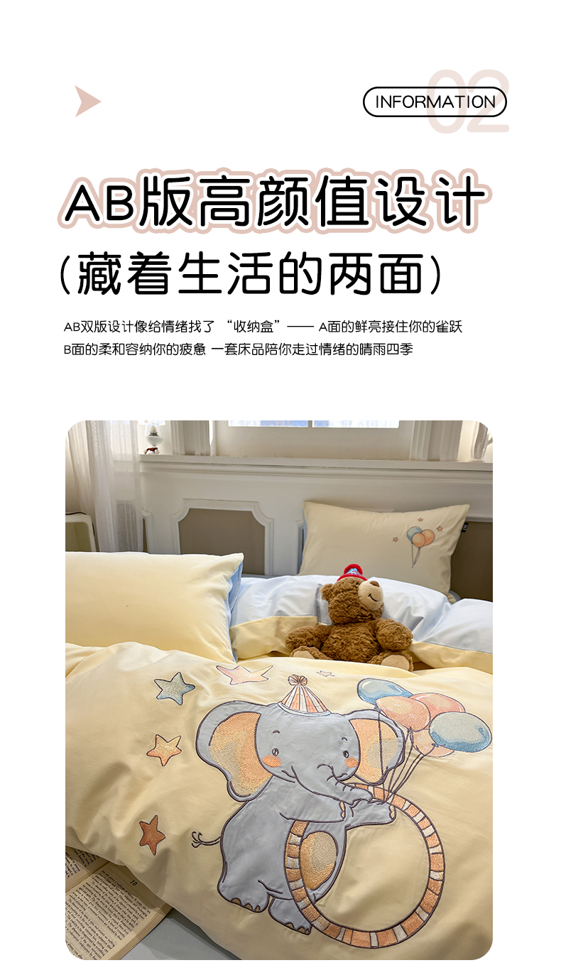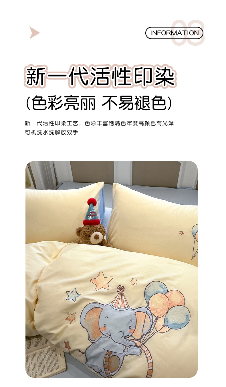 当前位置: 91家纺网 > 商品网购 > 床品套件 > 四件套 > 全棉普通四件套 > 乐美家纺 2026春夏新款软萌全棉纯棉贴布绣系列四件套 气球小象