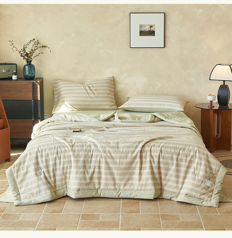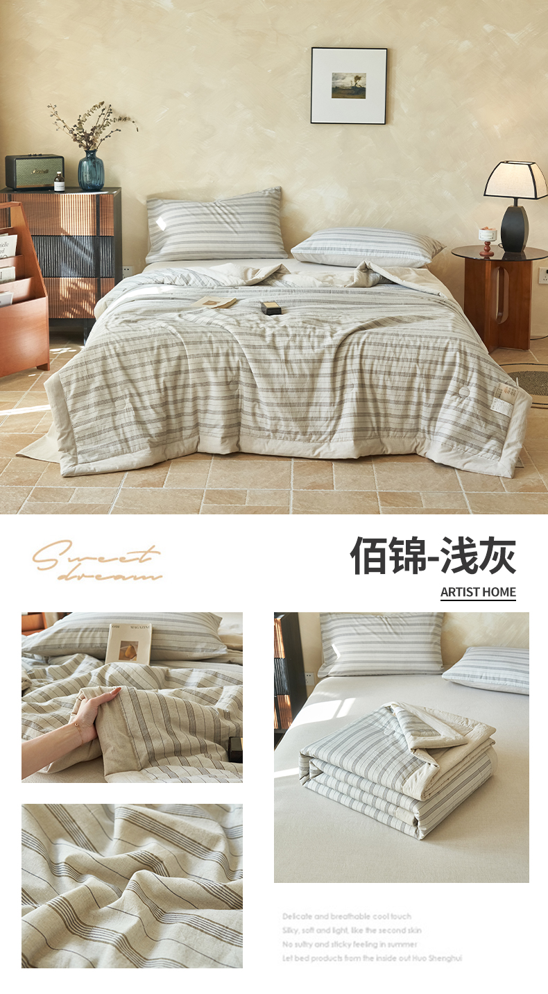 • 91家纺网 家纺一手货源 找家纺 恒爱家纺 2026春夏新款全棉棉麻夏被夏凉被空调被四件套系列 佰锦-卡其