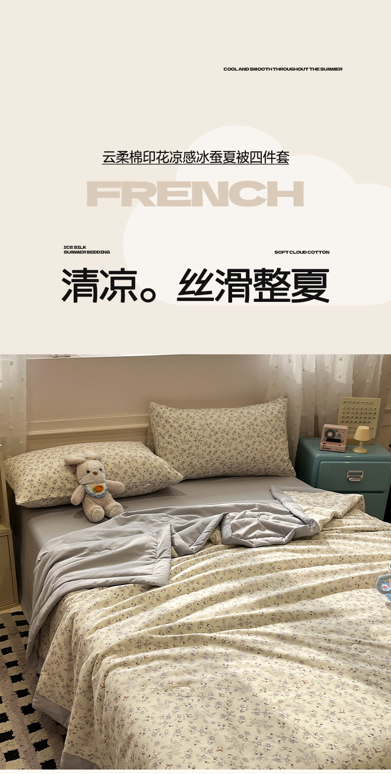 当前位置: 91家纺网 > 商品网购 > 被子 > 夏被 > 一加一 2026新款云柔棉印花凉感冰蚕夏被夏凉被空调被四件套 森林小镇