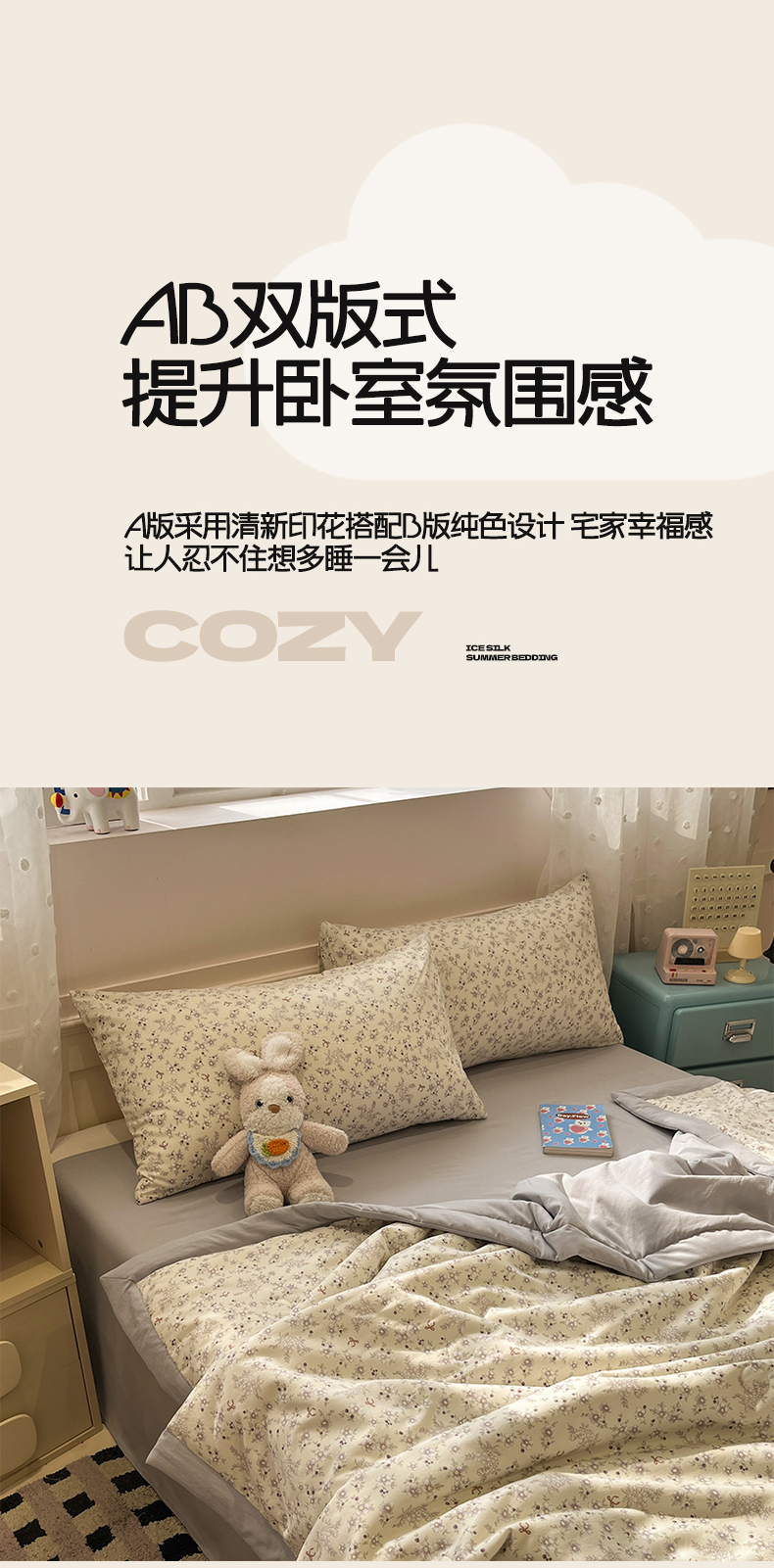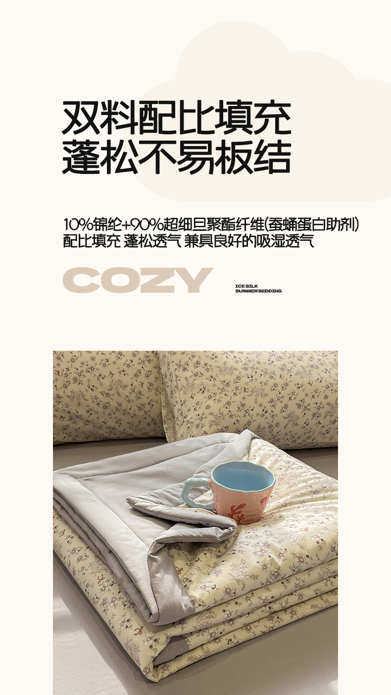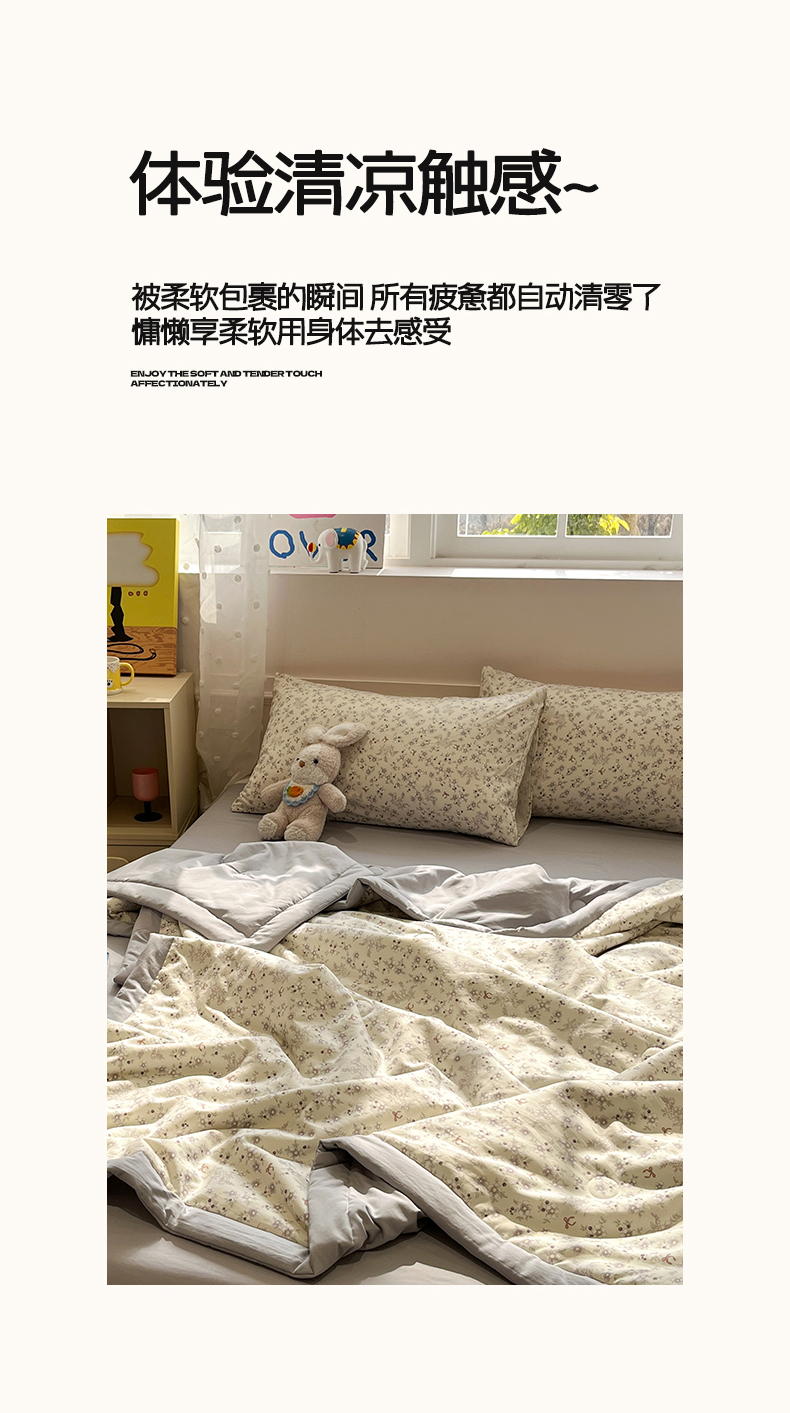 • 91家纺网 家纺一手货源 找家纺 一加一 2026新款云柔棉印花凉感冰蚕夏被夏凉被空调被四件套 森林小镇