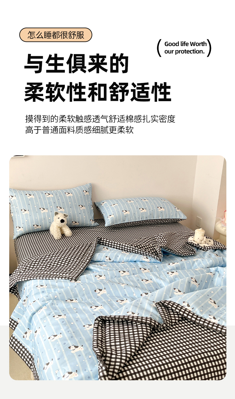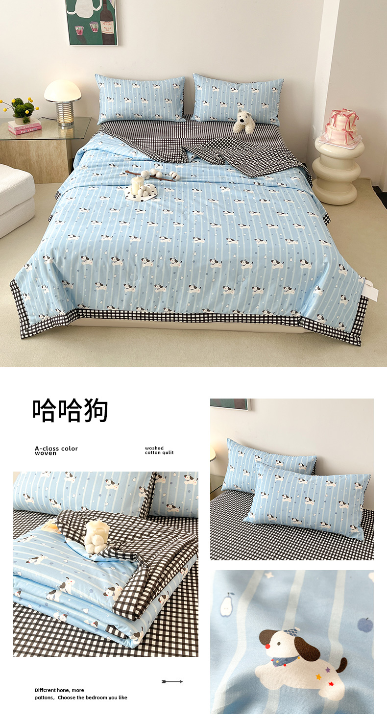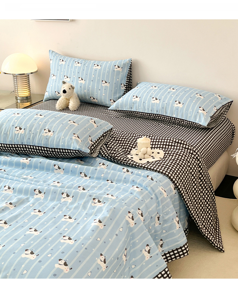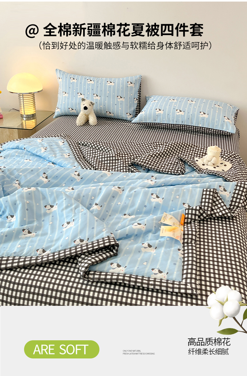 当前位置: 91家纺网 > 商品网购 > 床品套件 > 四件套 > 夏被四件套 > 一加一 2026新款全棉新疆棉花夏被夏凉被空调被四件套-棉语清夏 哈哈狗