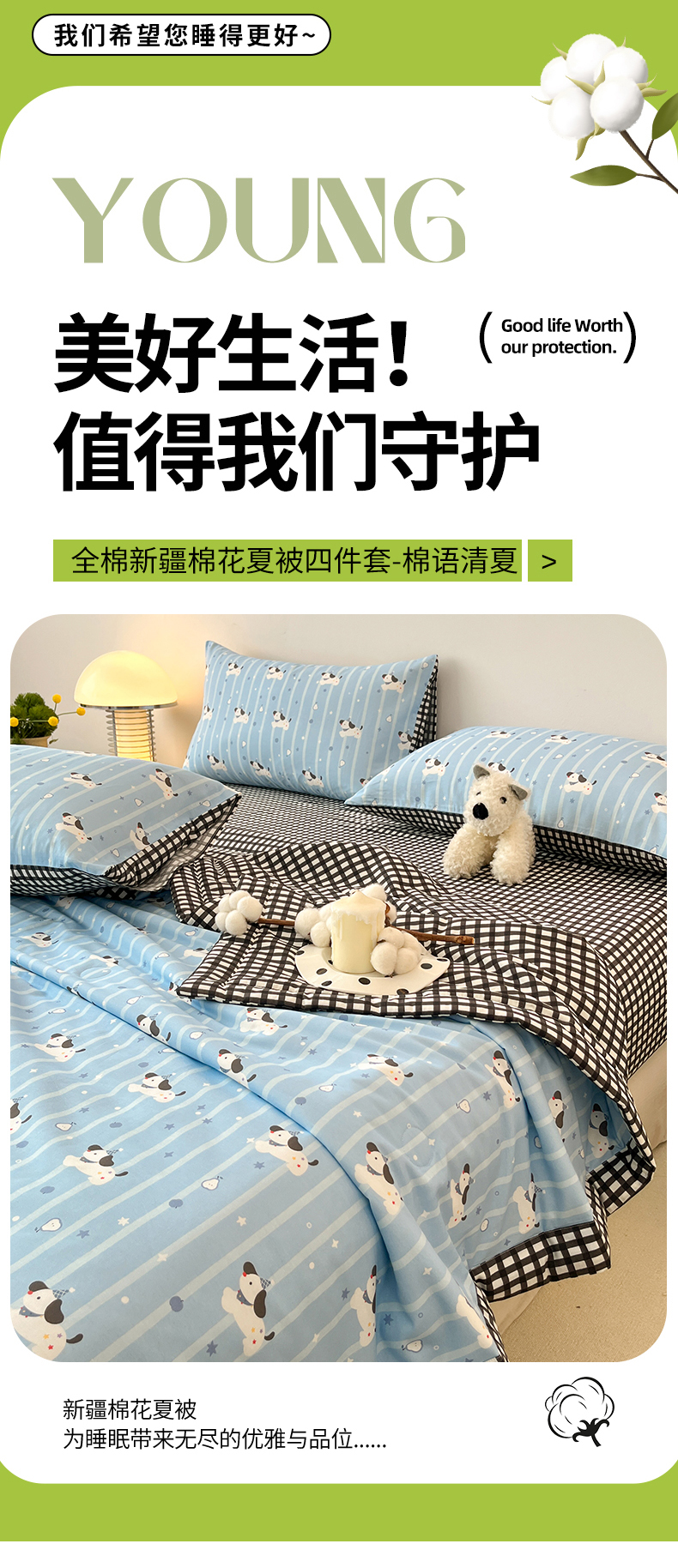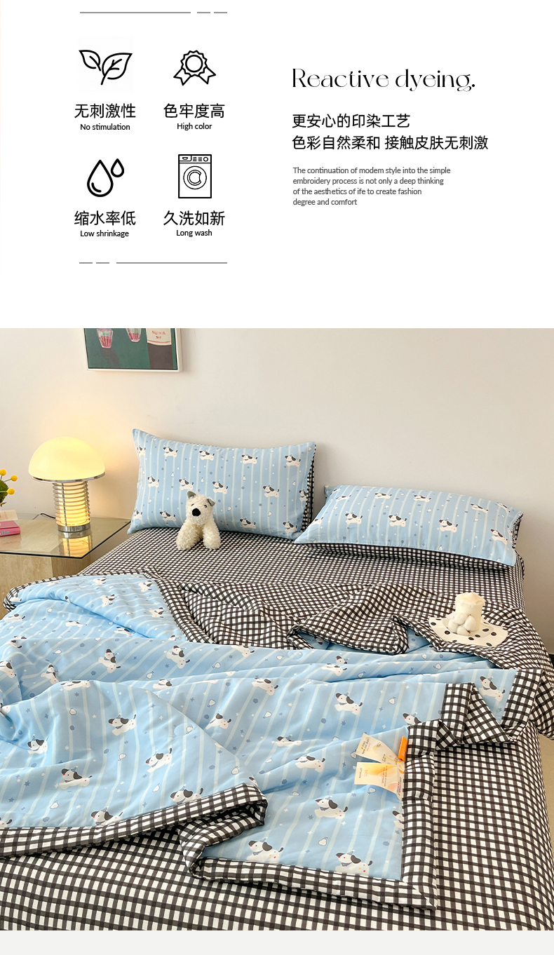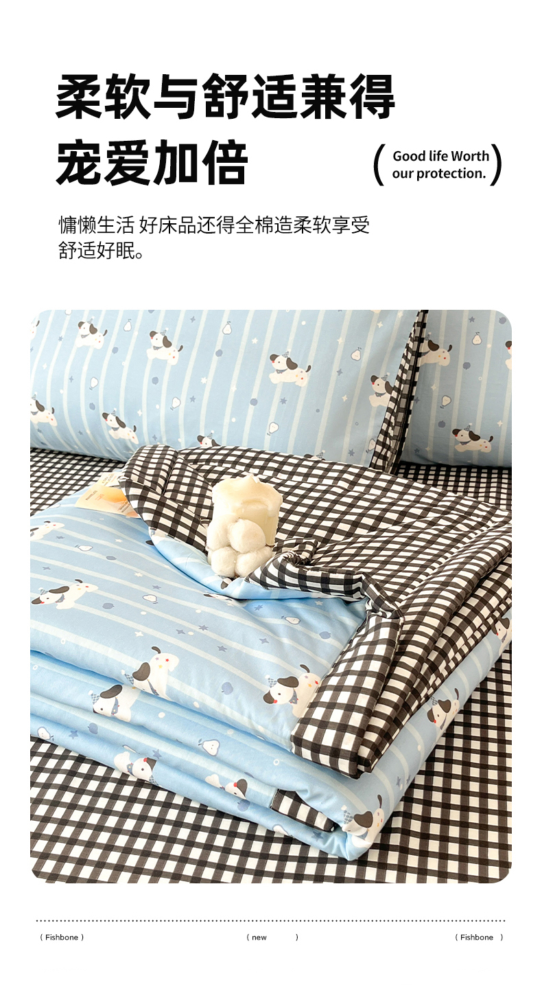 当前位置: 91家纺网 > 商品网购 > 床品套件 > 四件套 > 夏被四件套 > 一加一 2026新款全棉新疆棉花夏被夏凉被空调被四件套-棉语清夏 哈哈狗
