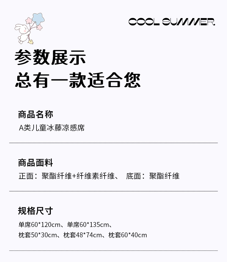 60*120cm单凉席+50*30cm枕套 | ¥25.00 |