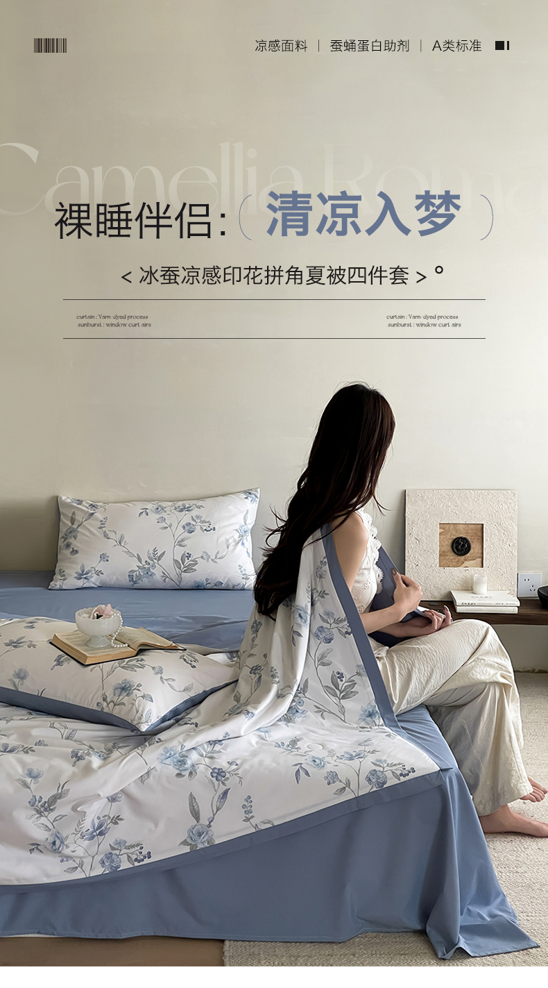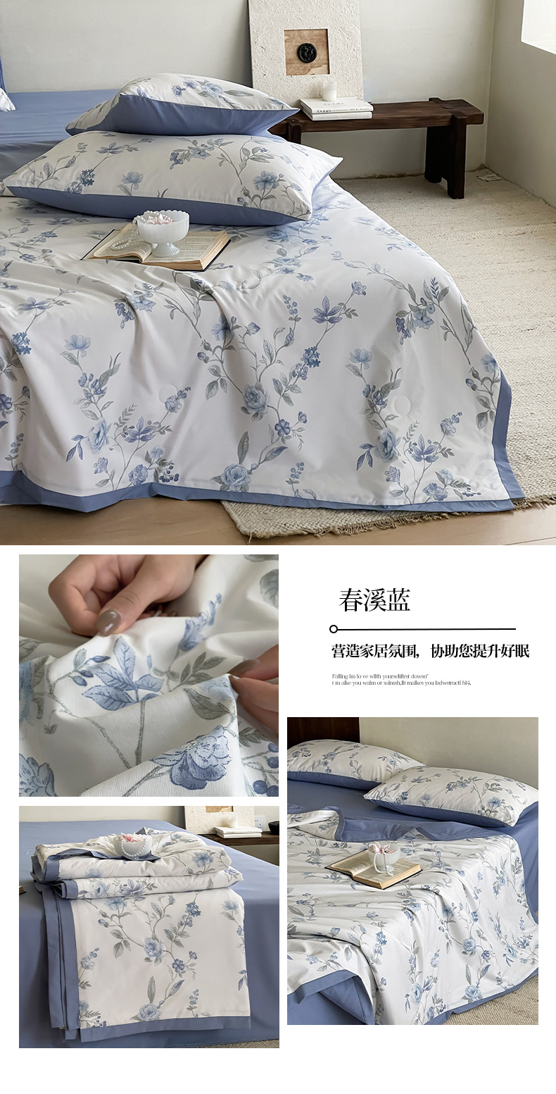 当前位置: 91家纺网 > 商品网购 > 床品套件 > 四件套 > 夏被四件套 > 一加一 2026新款冰蚕凉感印花断角夏被夏凉被空调被四件套 春溪蓝