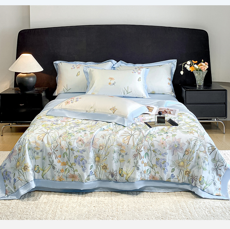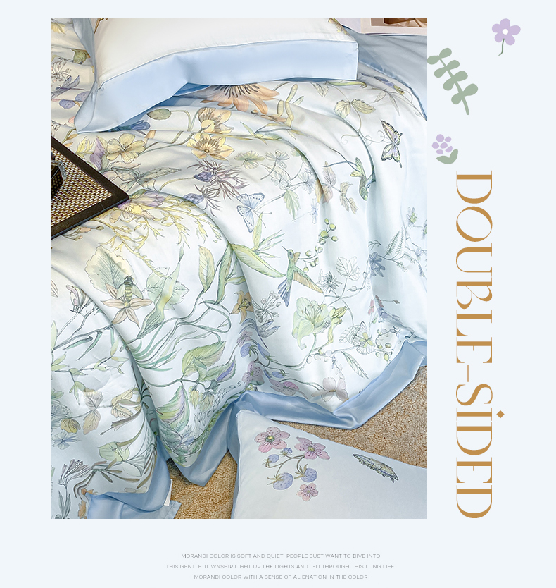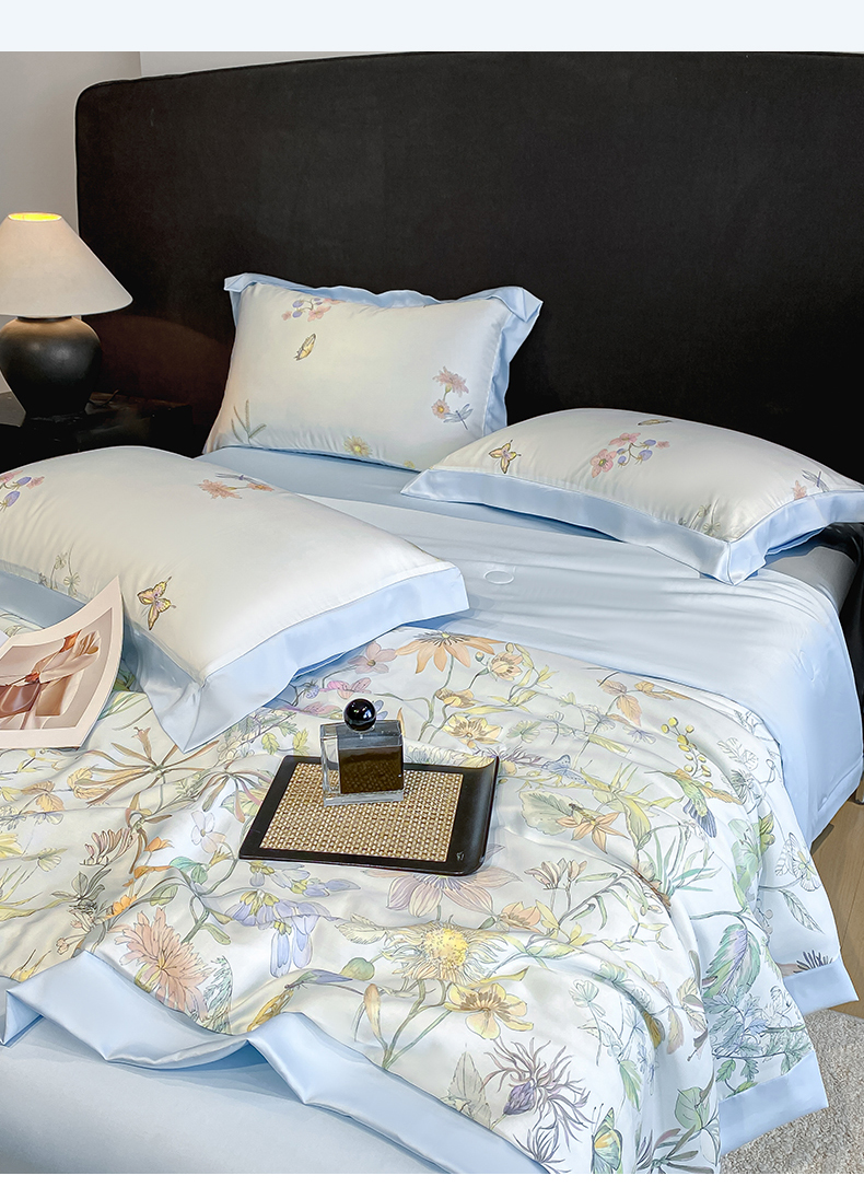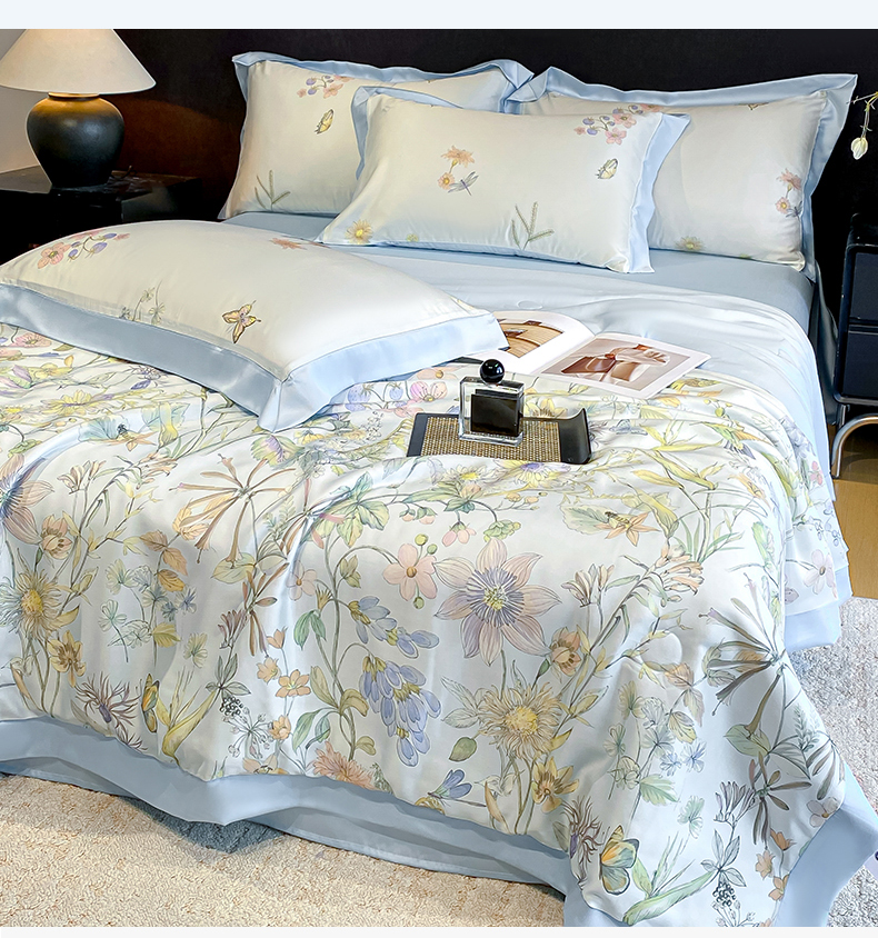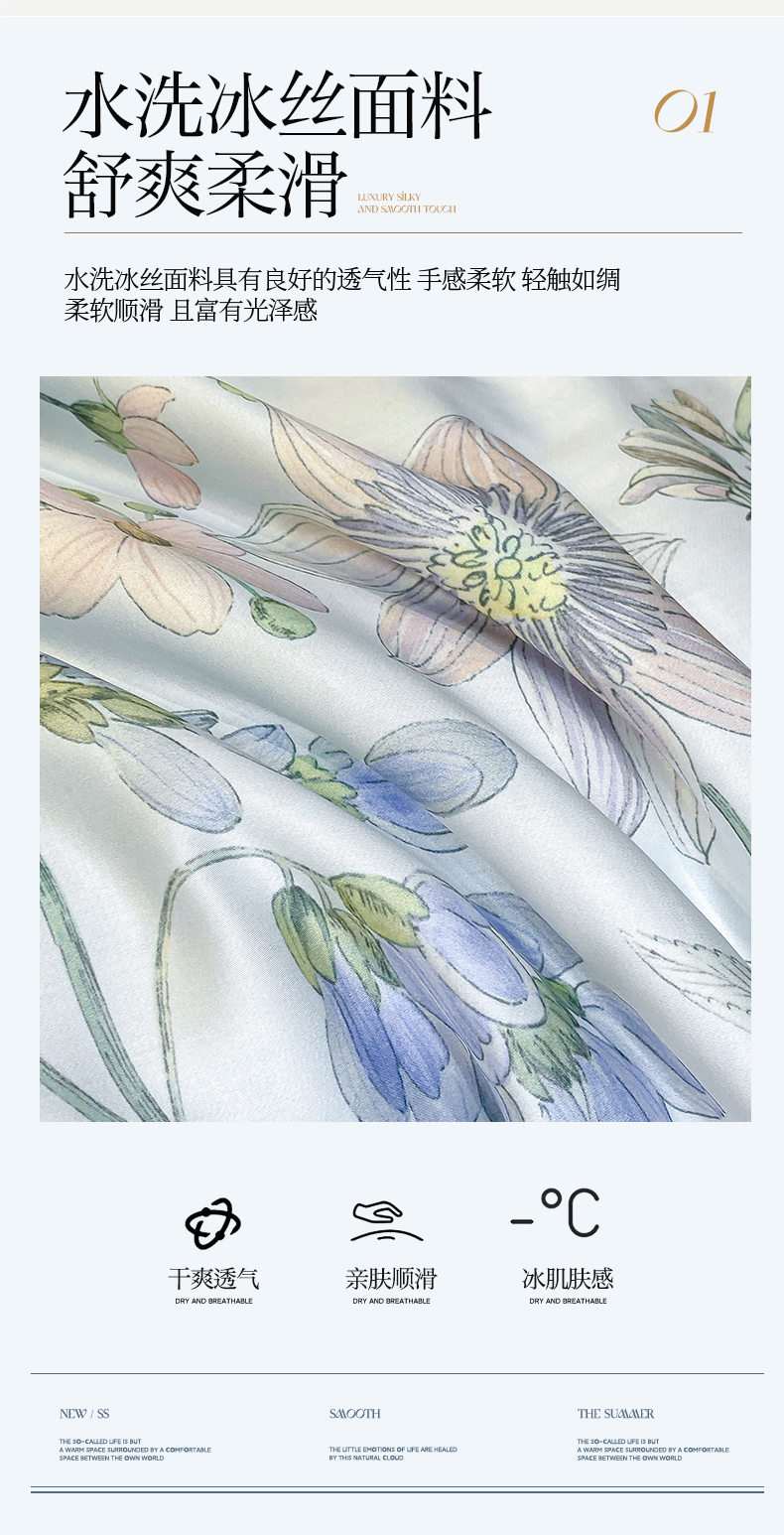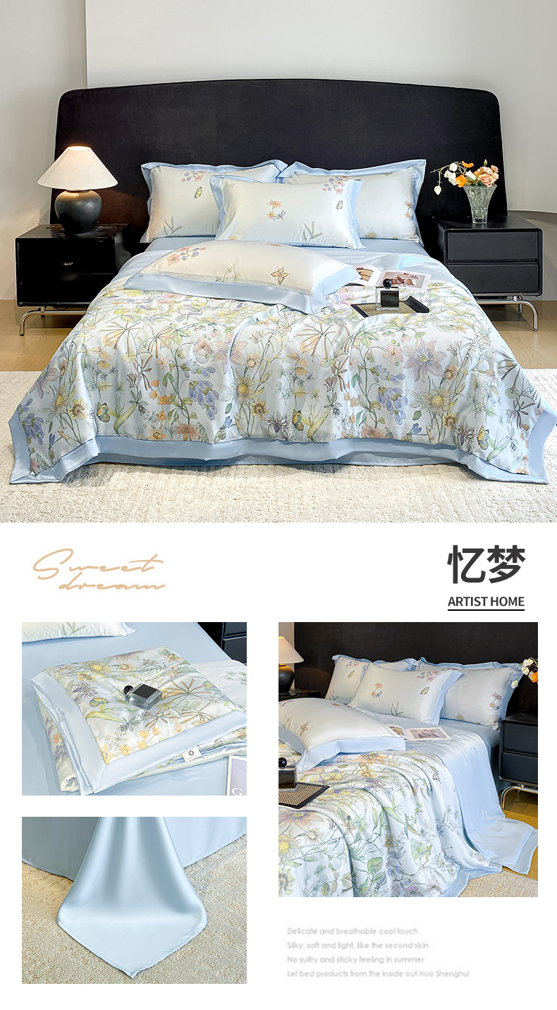 笙意家纺 2026A类水洗冰丝数码印花宽边夏被四件套忆梦