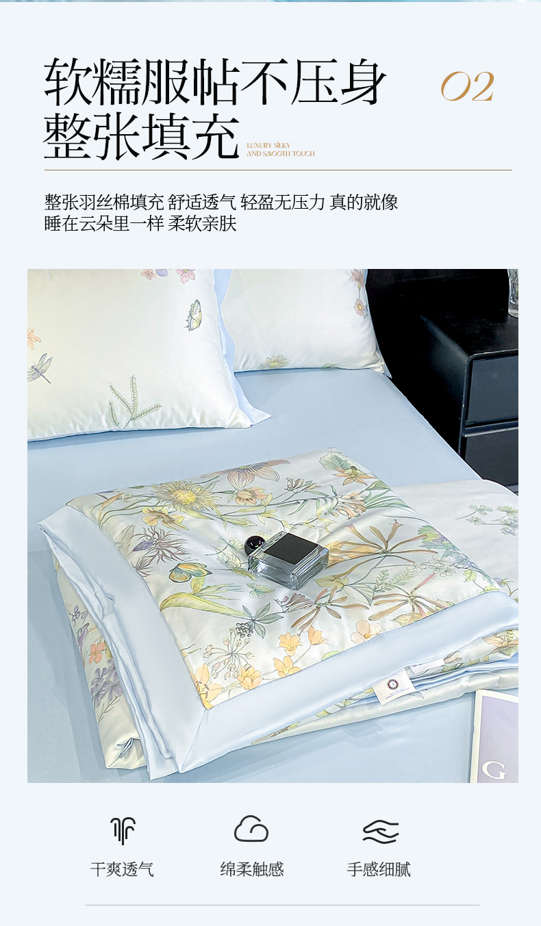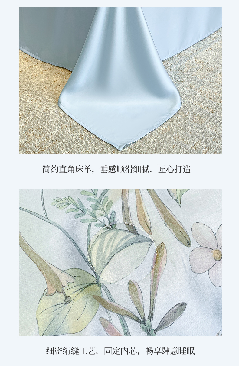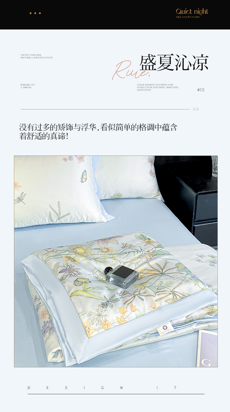 • 91家纺网 家纺一手货源 找家纺 笙意家纺 2026A类水洗冰丝数码印花宽边夏被四件套忆梦