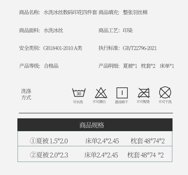 200x230夏被床单四件套(夏被*1 枕套*2 床单*1)