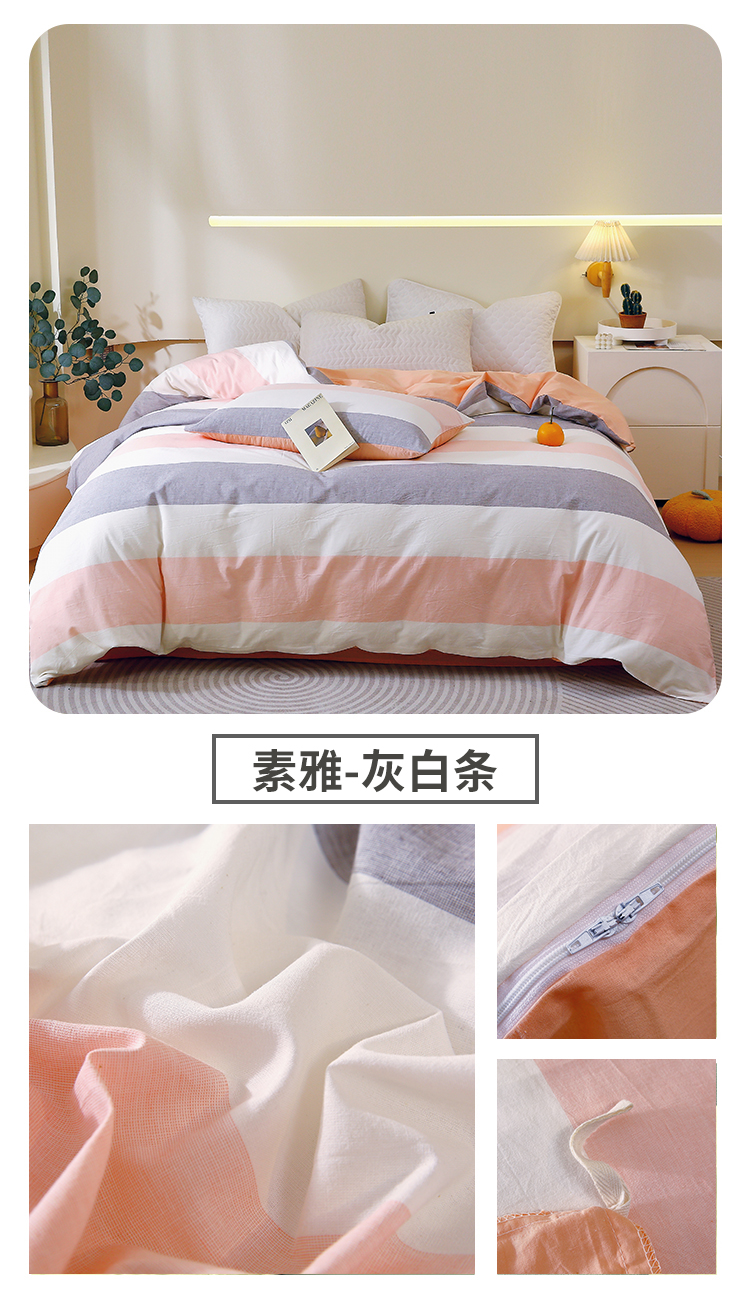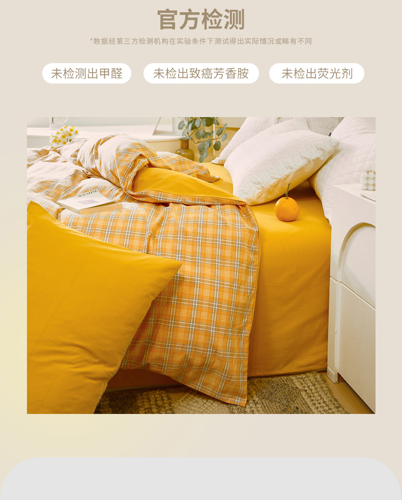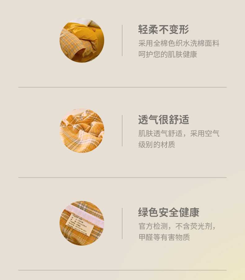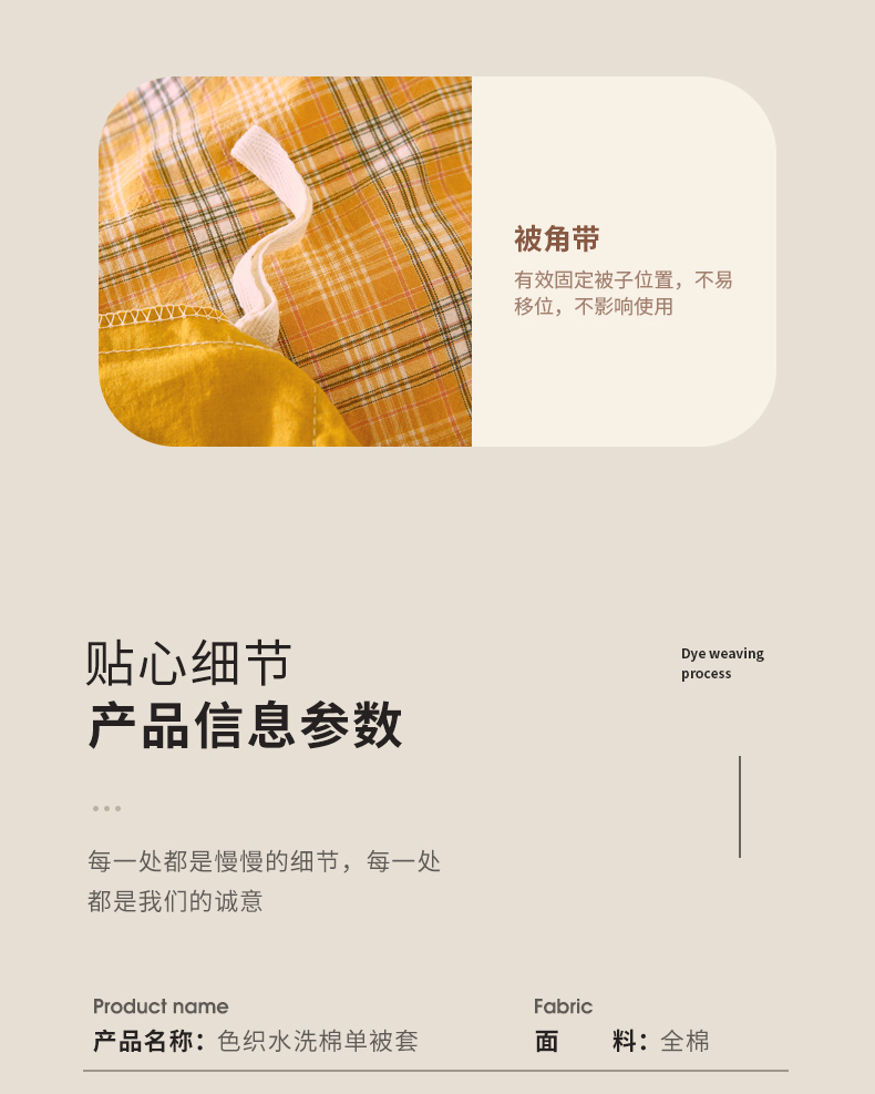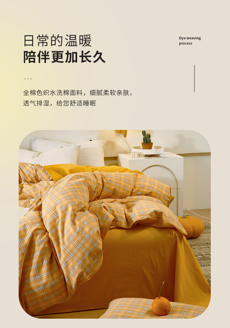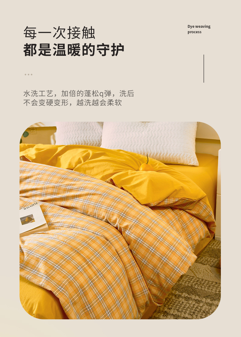 商品名称:春皖家纺 2026新款色织AB版水洗棉三件套四件套单品系列(单被套风格一) 素雅-黄条