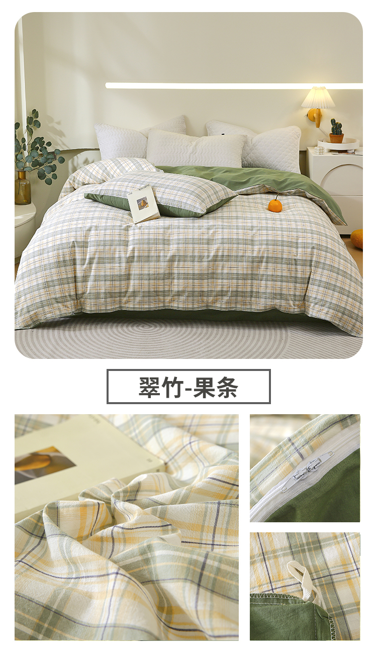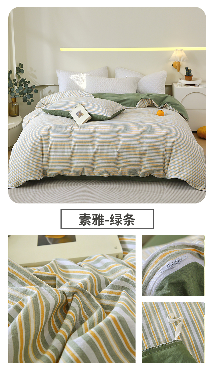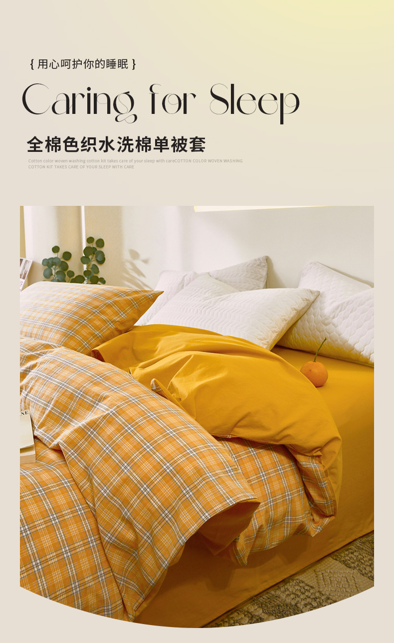 春皖家纺 2026新款色织AB版水洗棉三件套四件套单品系列(单被套风格一) 素雅-黄条