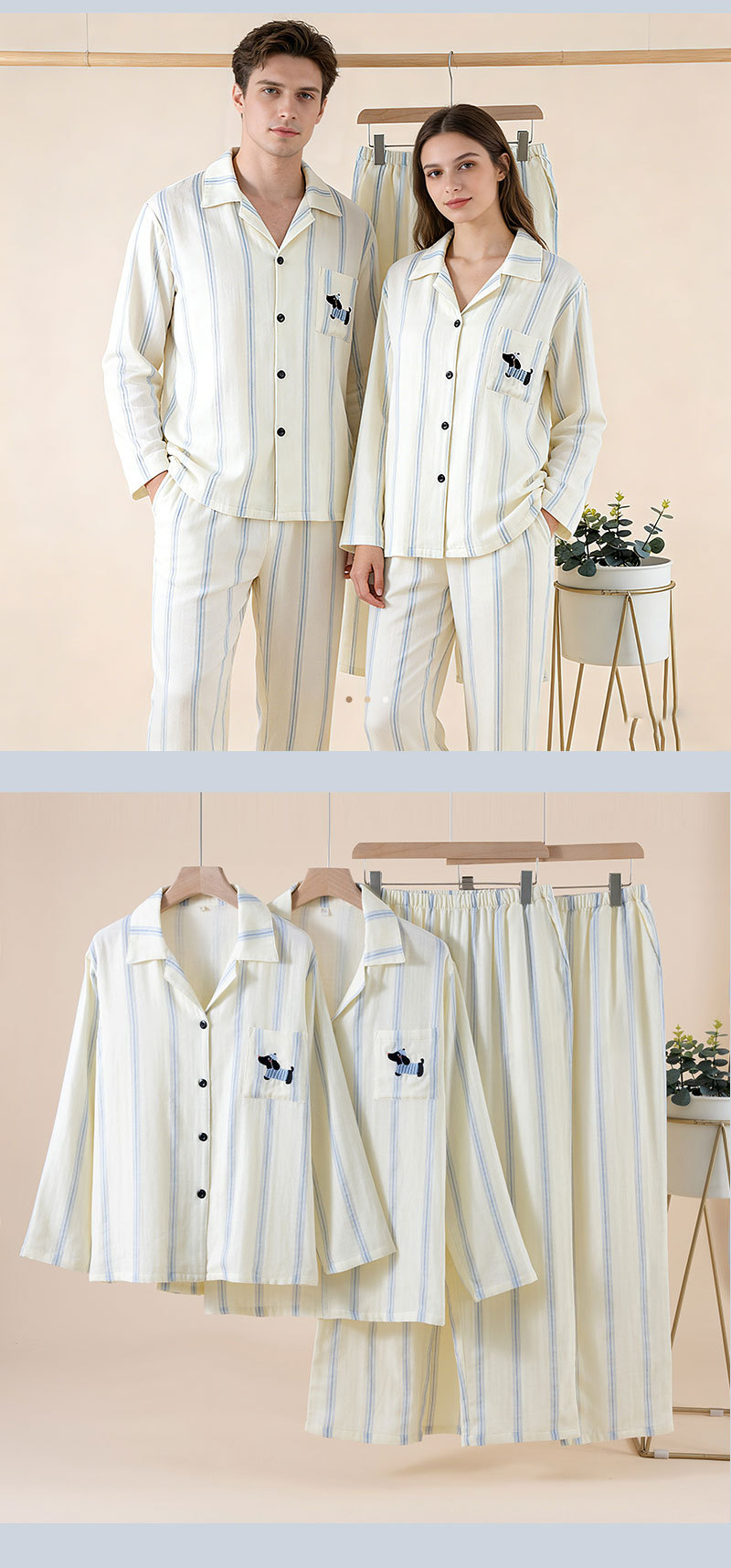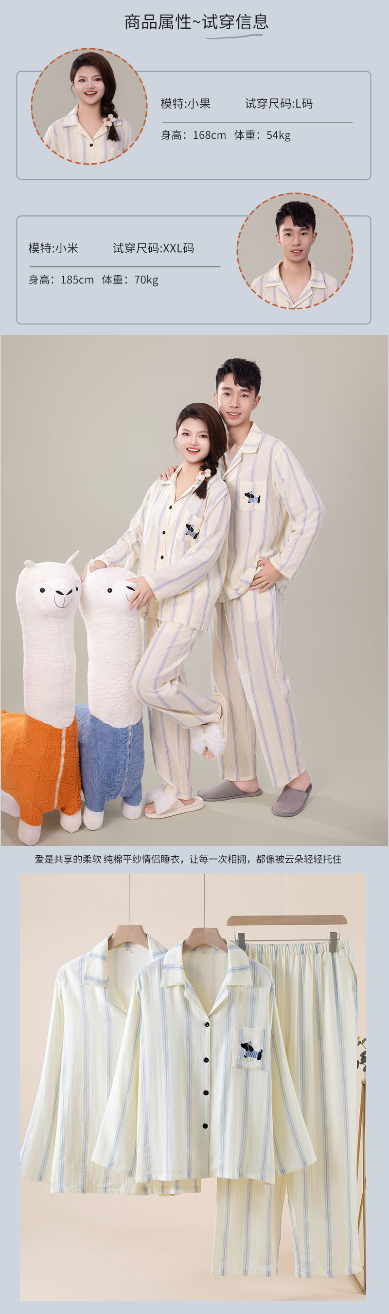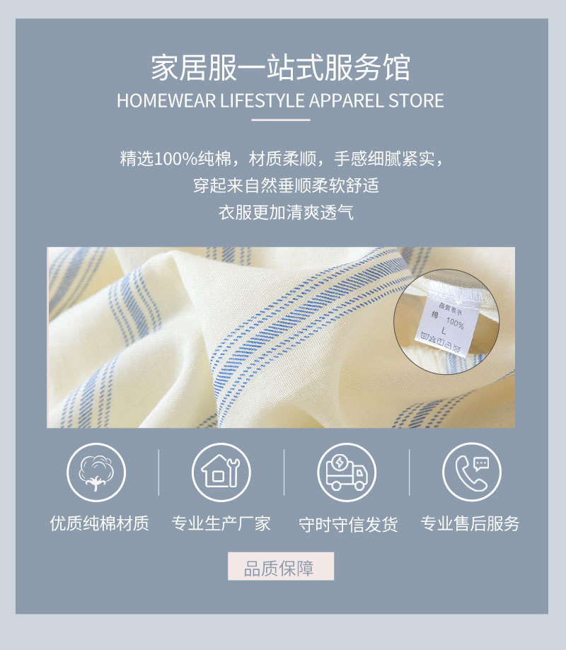 (总)洛兰沙家居馆 情侣睡衣女春秋季长袖棉质可外穿男生翻领开衫春秋家居服条纹套装,女款,男款