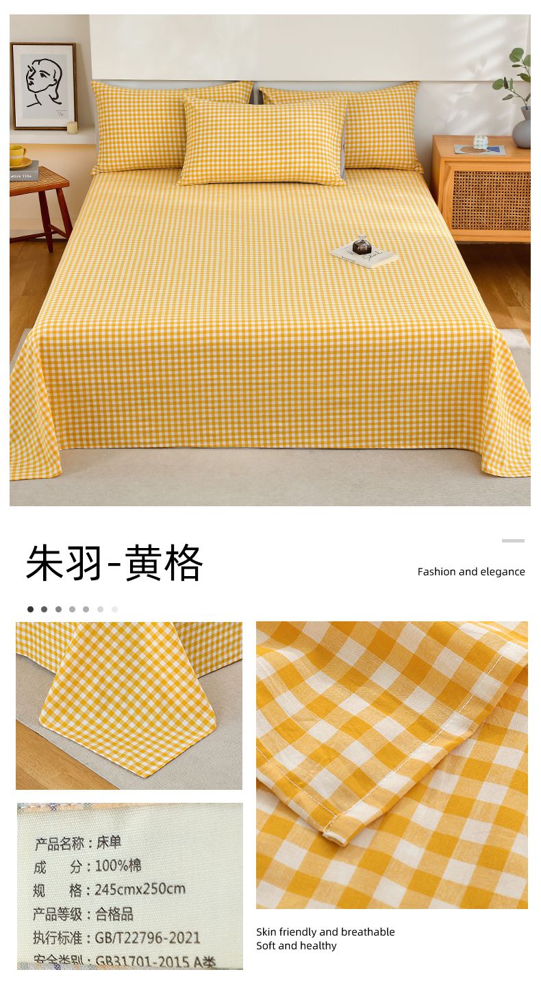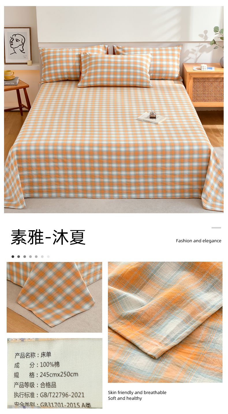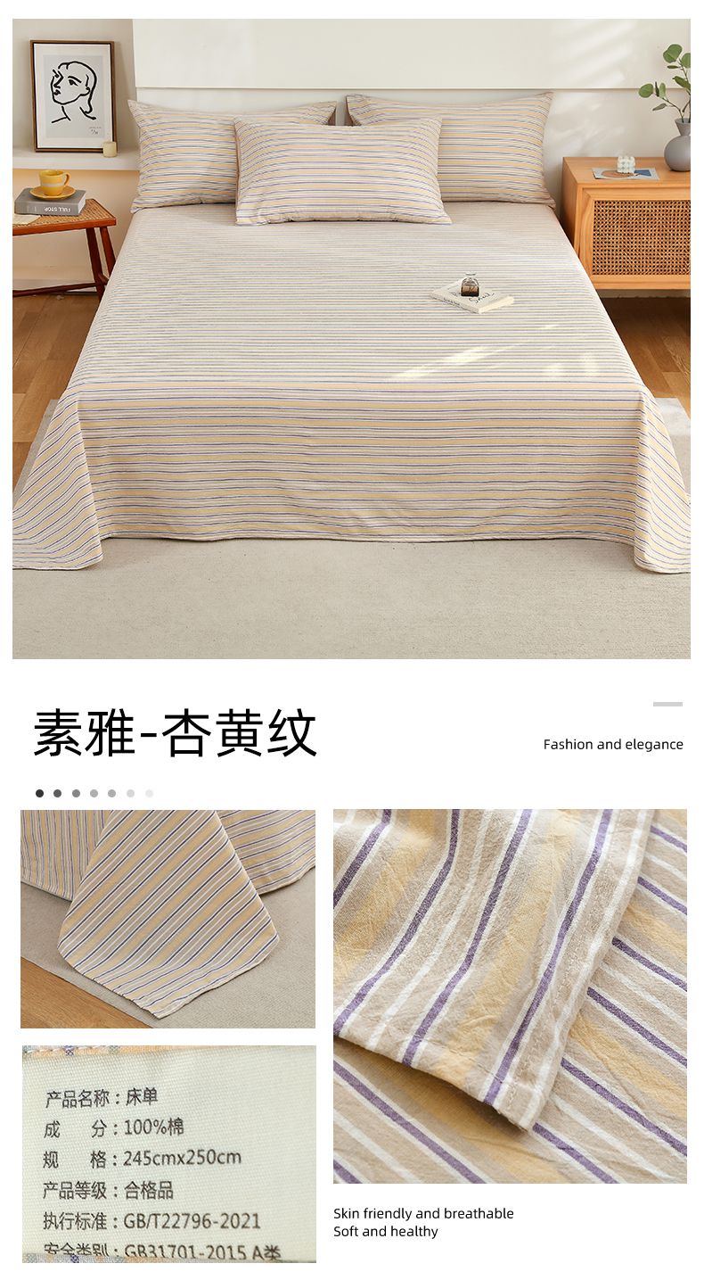 春皖家纺 2026新款色织AB版水洗棉三件套四件套单品系列(单床单-A版风格一) 素雅-蓝条