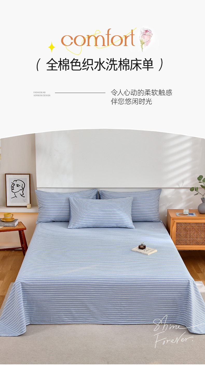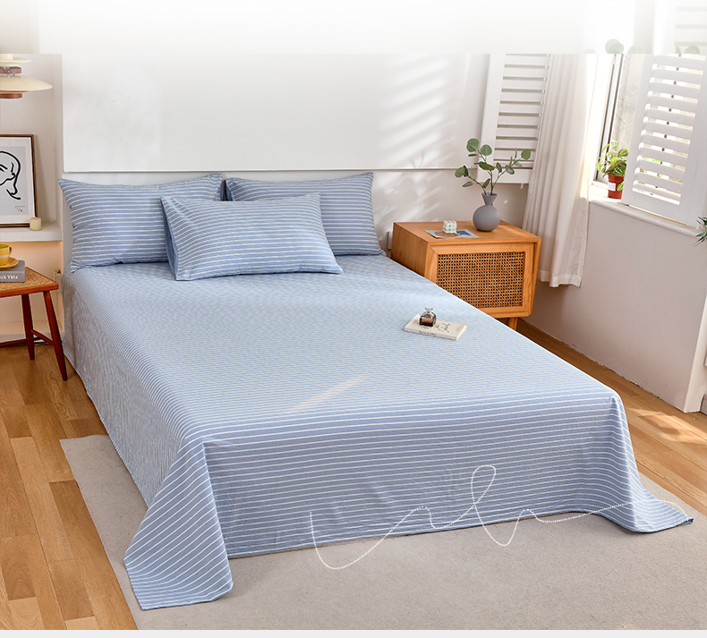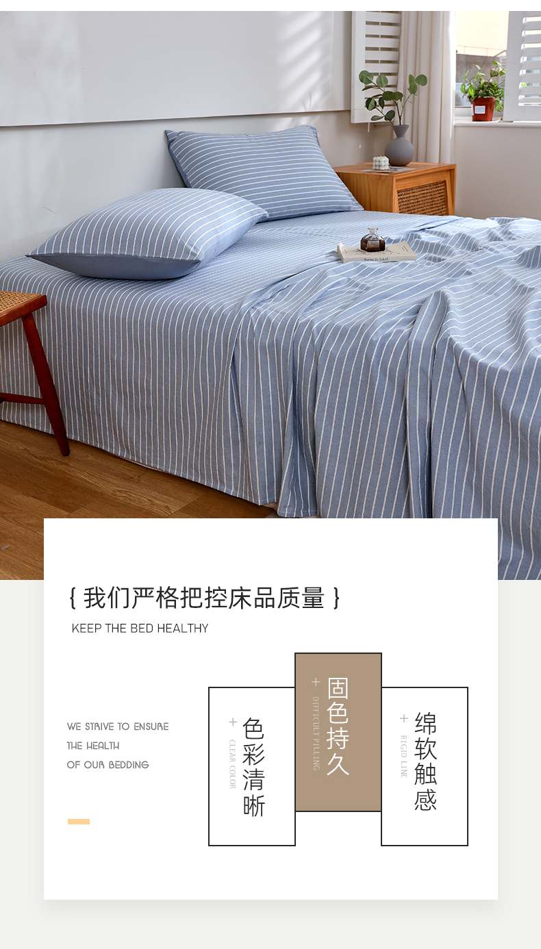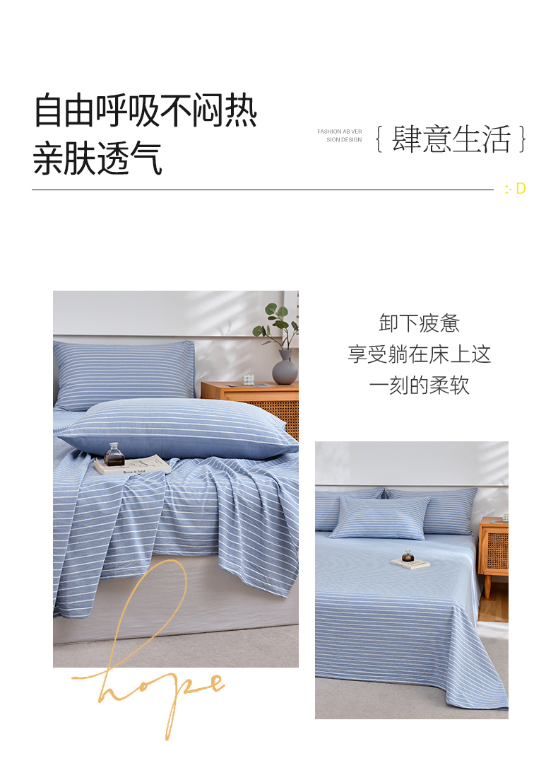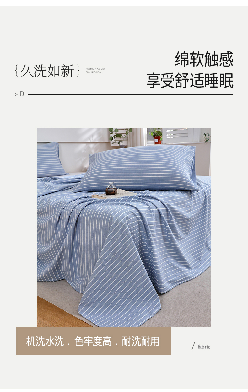 商品名称:春皖家纺 2026新款色织AB版水洗棉三件套四件套单品系列(单床单-A版风格一) 素雅-蓝条