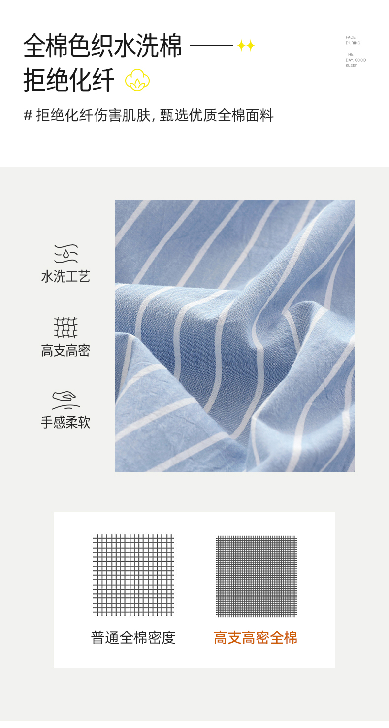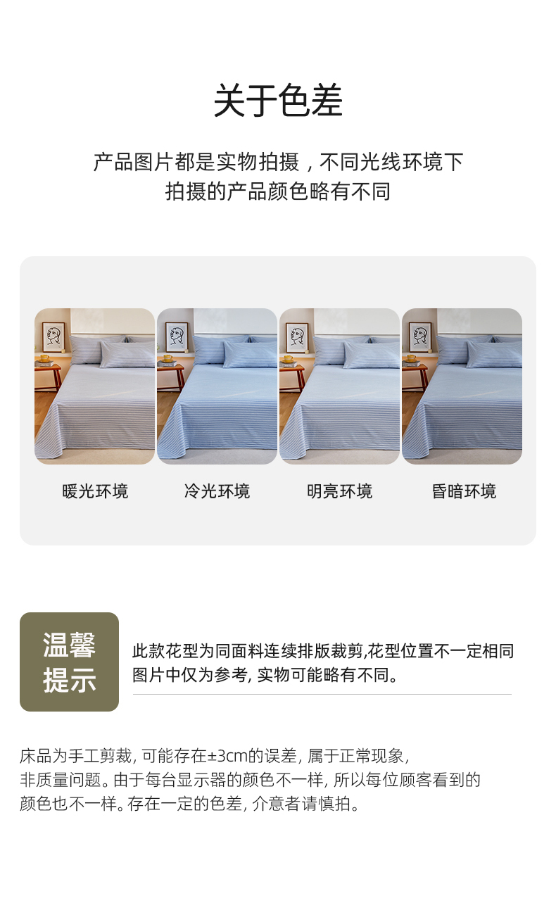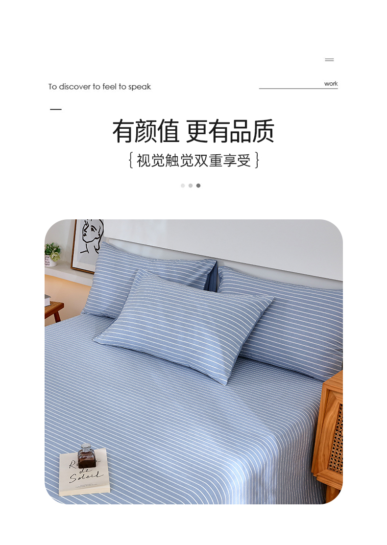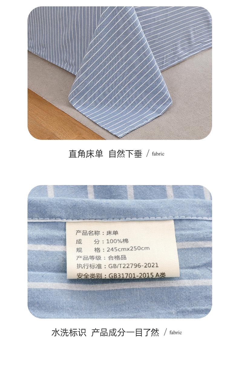 商品名称:春皖家纺 2026新款色织AB版水洗棉三件套四件套单品系列(单床单-A版风格一) 素雅-蓝条