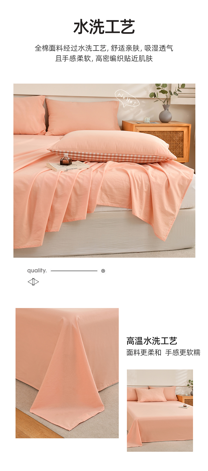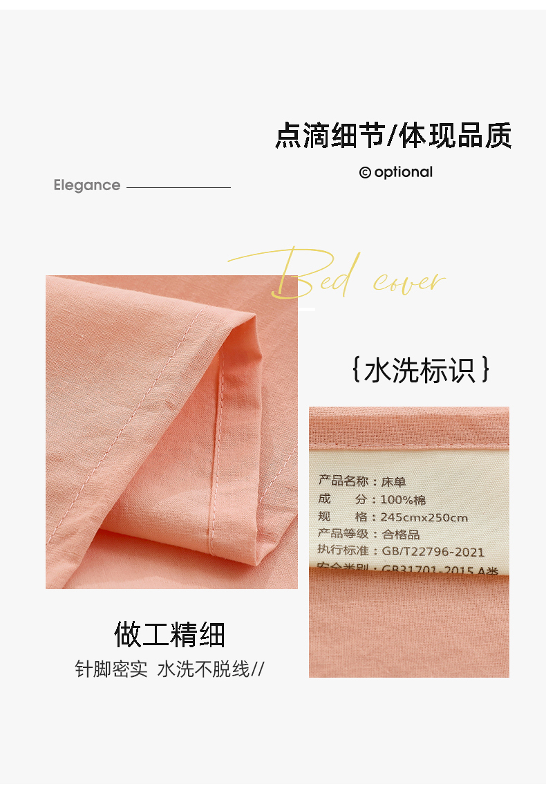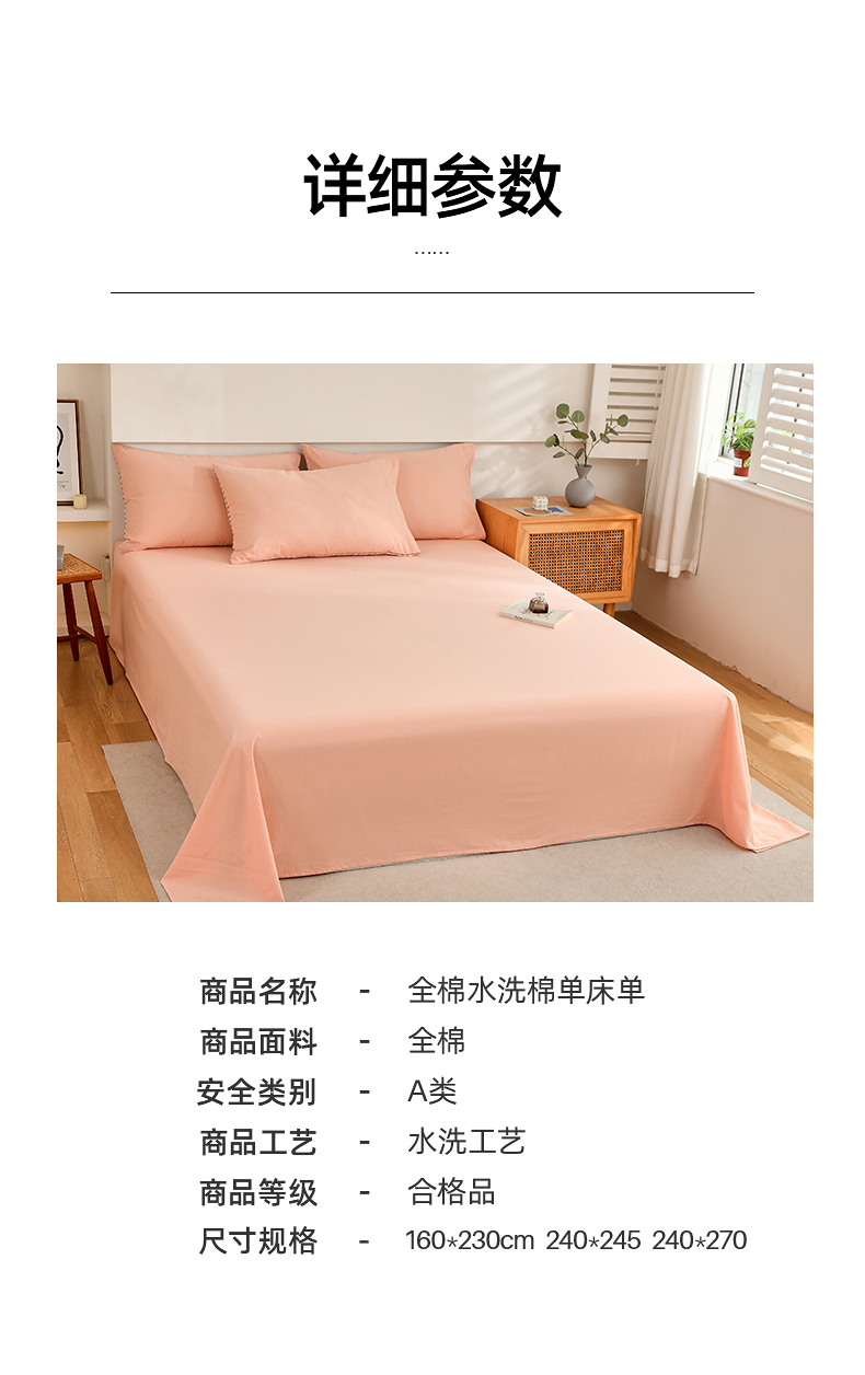 商品名称:春皖家纺 2026新款色织AB版水洗棉三件套四件套单品系列(单床单-B版风格一) 素雅浅玉