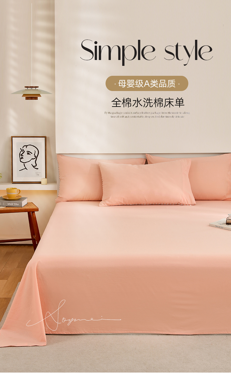 春皖家纺 2026新款色织AB版水洗棉三件套四件套单品系列(单床单-B版风格一) 素雅浅玉