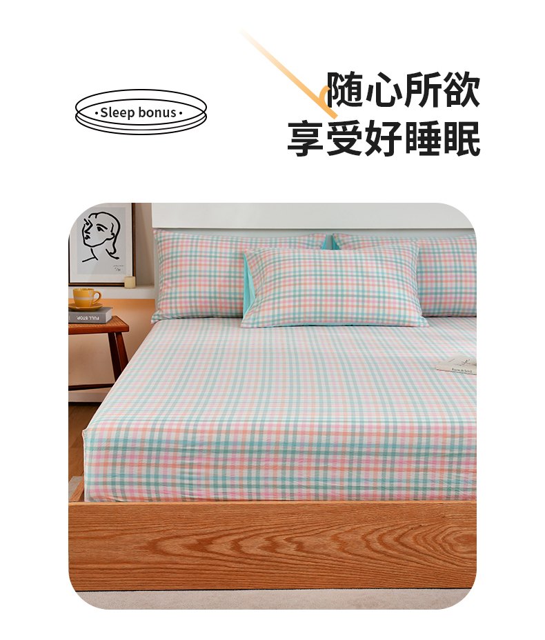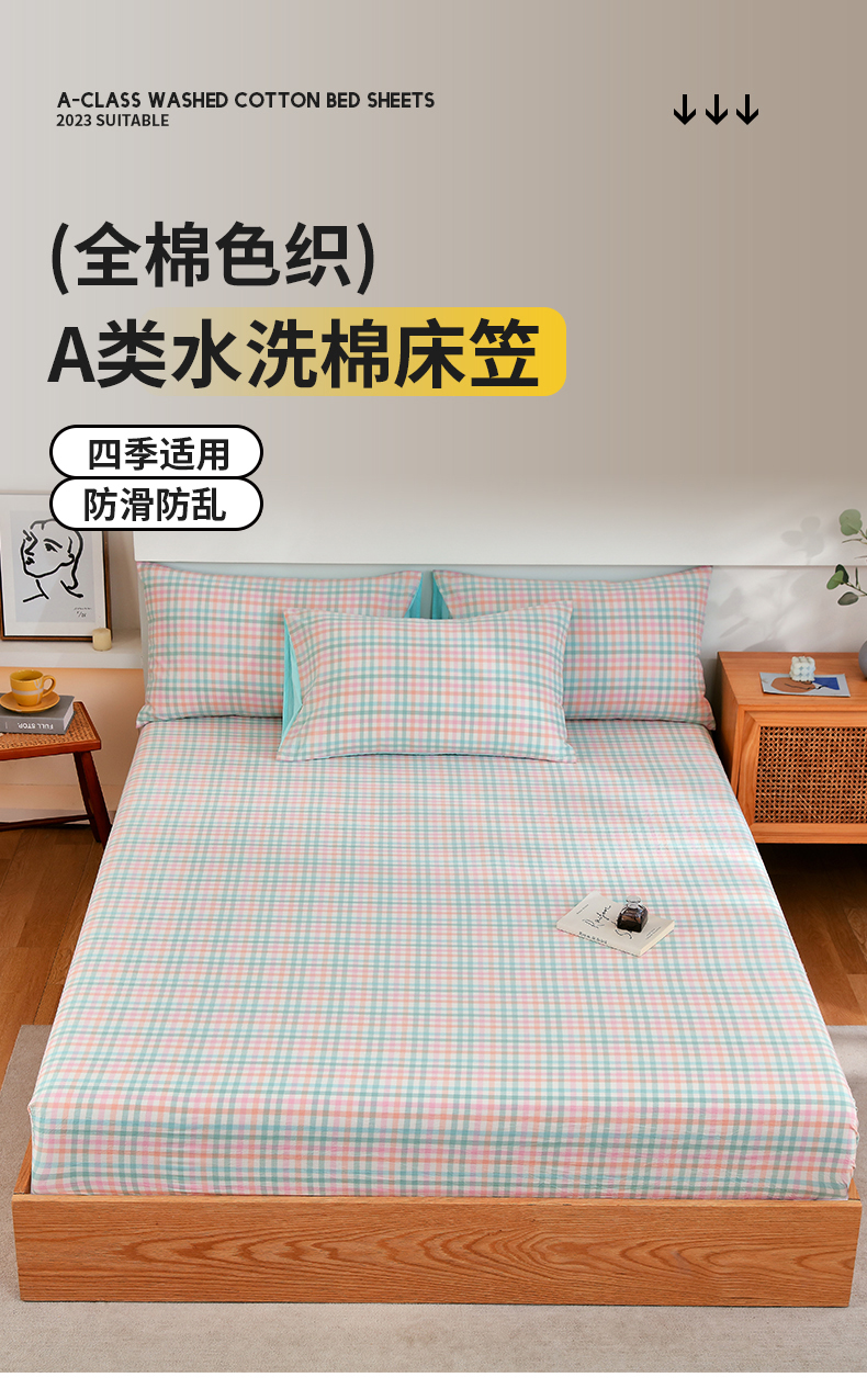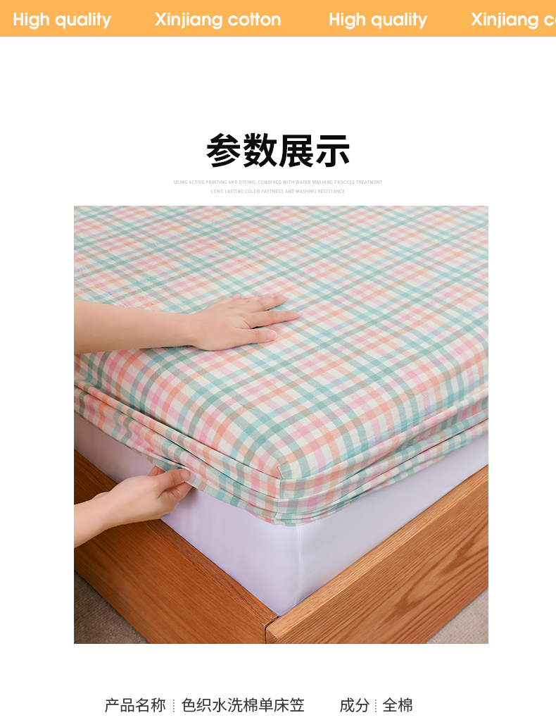 春皖家纺 2026新款色织AB版水洗棉三件套四件套单品系列(单床笠-A版风格一) 翠竹-绿格