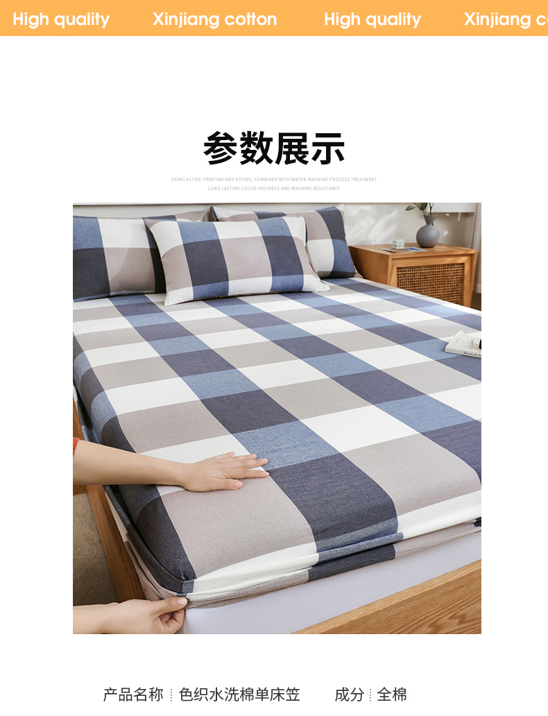 商品名称:春皖家纺 2026新款色织AB版水洗棉三件套四件套单品系列(单床笠-A版风格一) 素雅-蓝大格