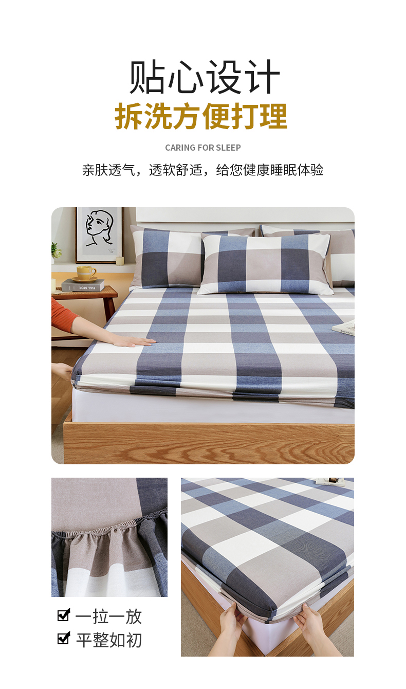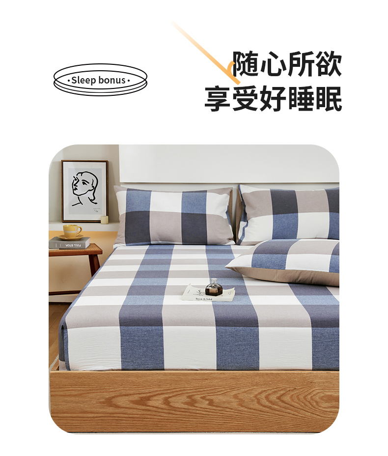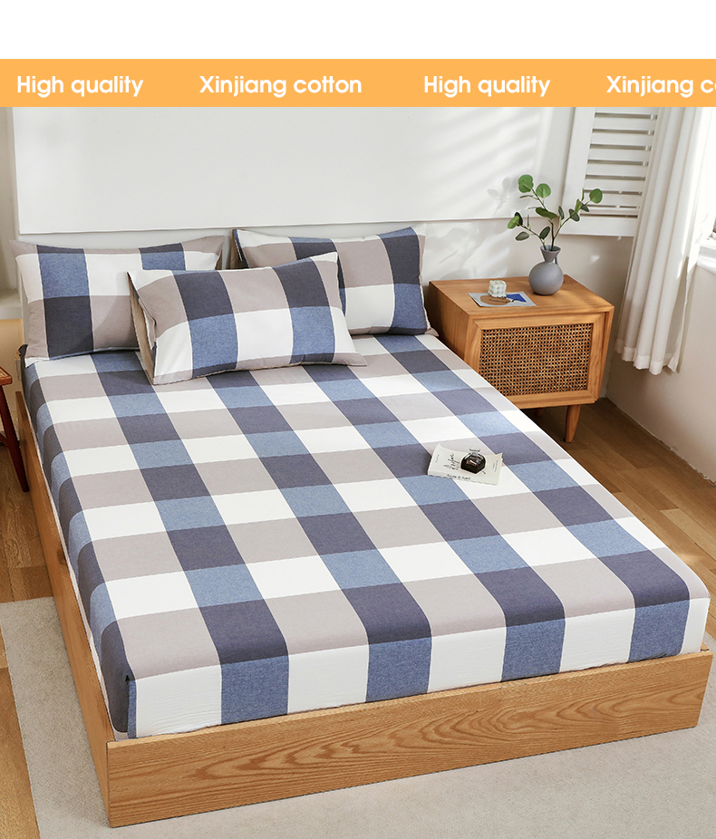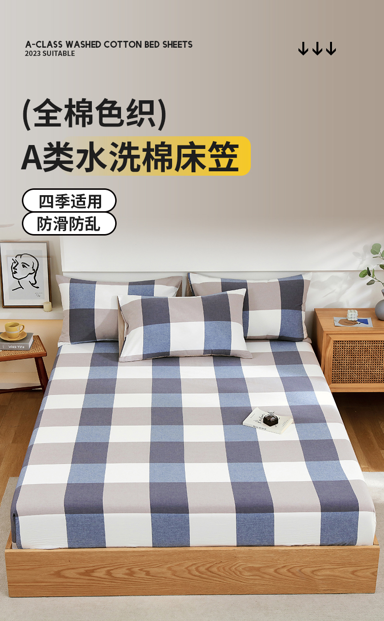 春皖家纺 2026新款色织AB版水洗棉三件套四件套单品系列(单床笠-A版风格一) 素雅-蓝大格