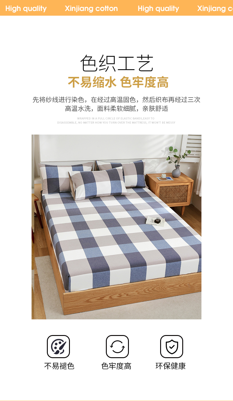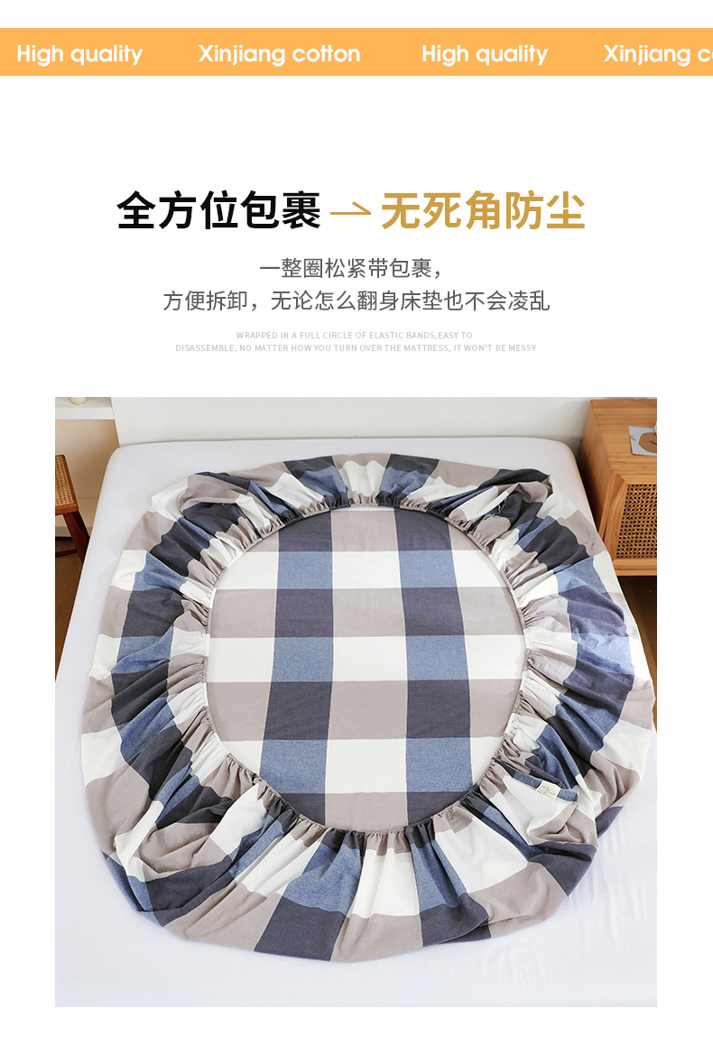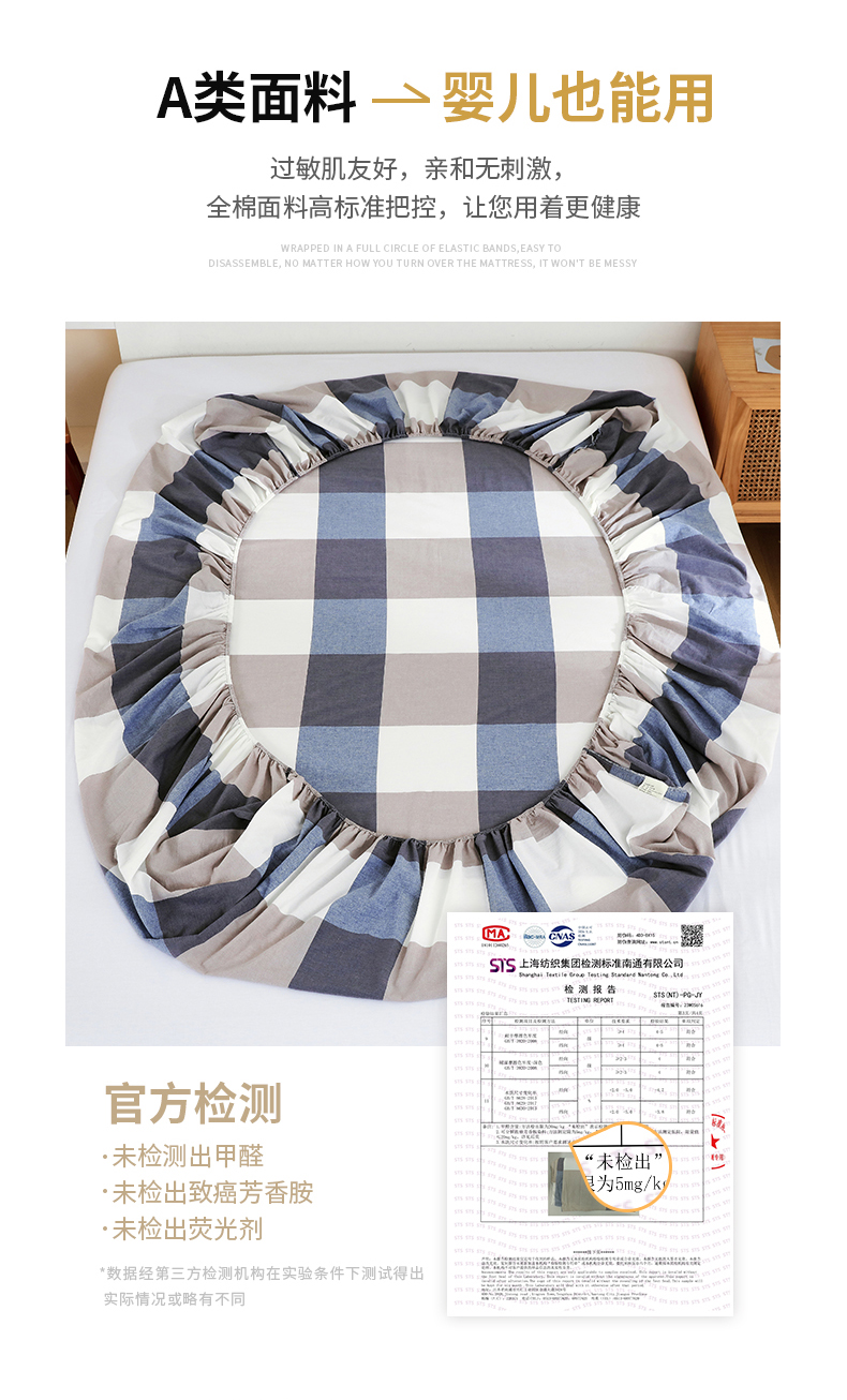 春皖家纺 2026新款色织AB版水洗棉三件套四件套单品系列(单床笠-A版风格一) 素雅-蓝大格
