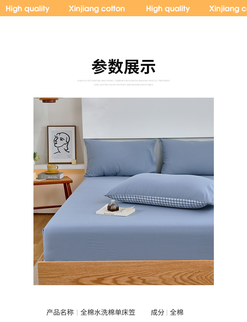 商品名称:春皖家纺 2026新款色织AB版水洗棉三件套四件套单品系列(单床笠-B版风格一) 素雅幻蓝