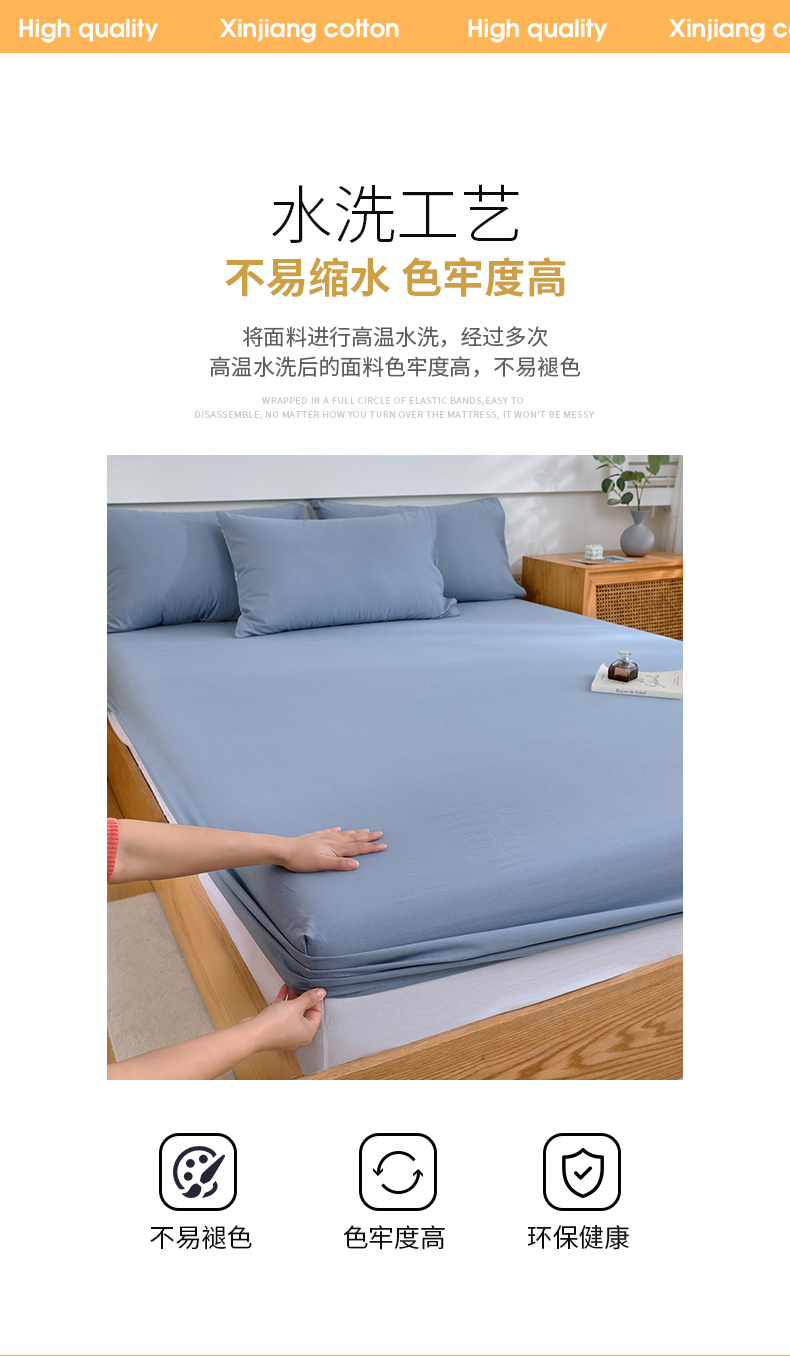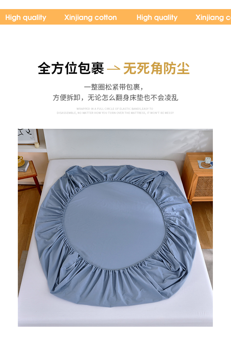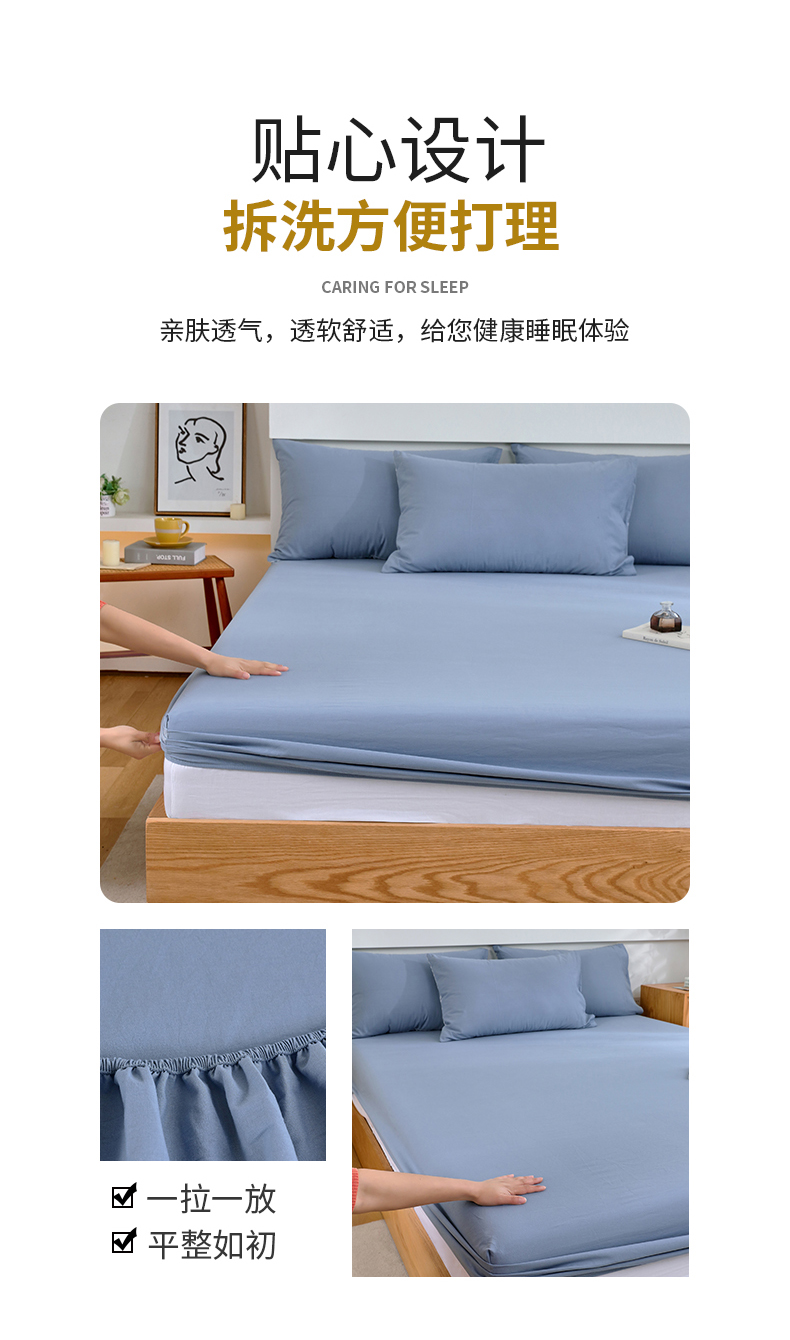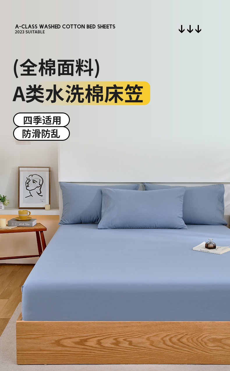 春皖家纺 2026新款色织AB版水洗棉三件套四件套单品系列(单床笠-B版风格一) 素雅幻蓝