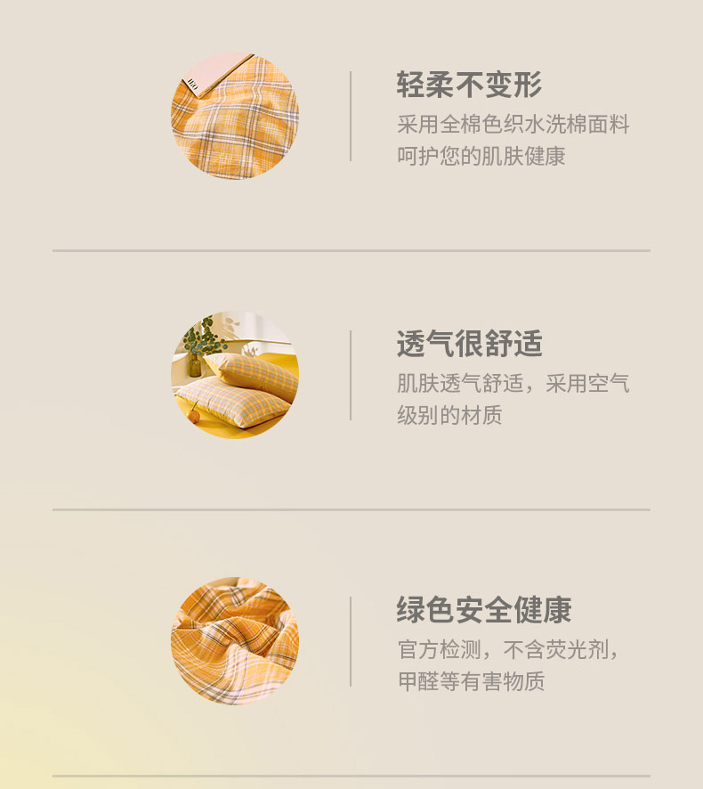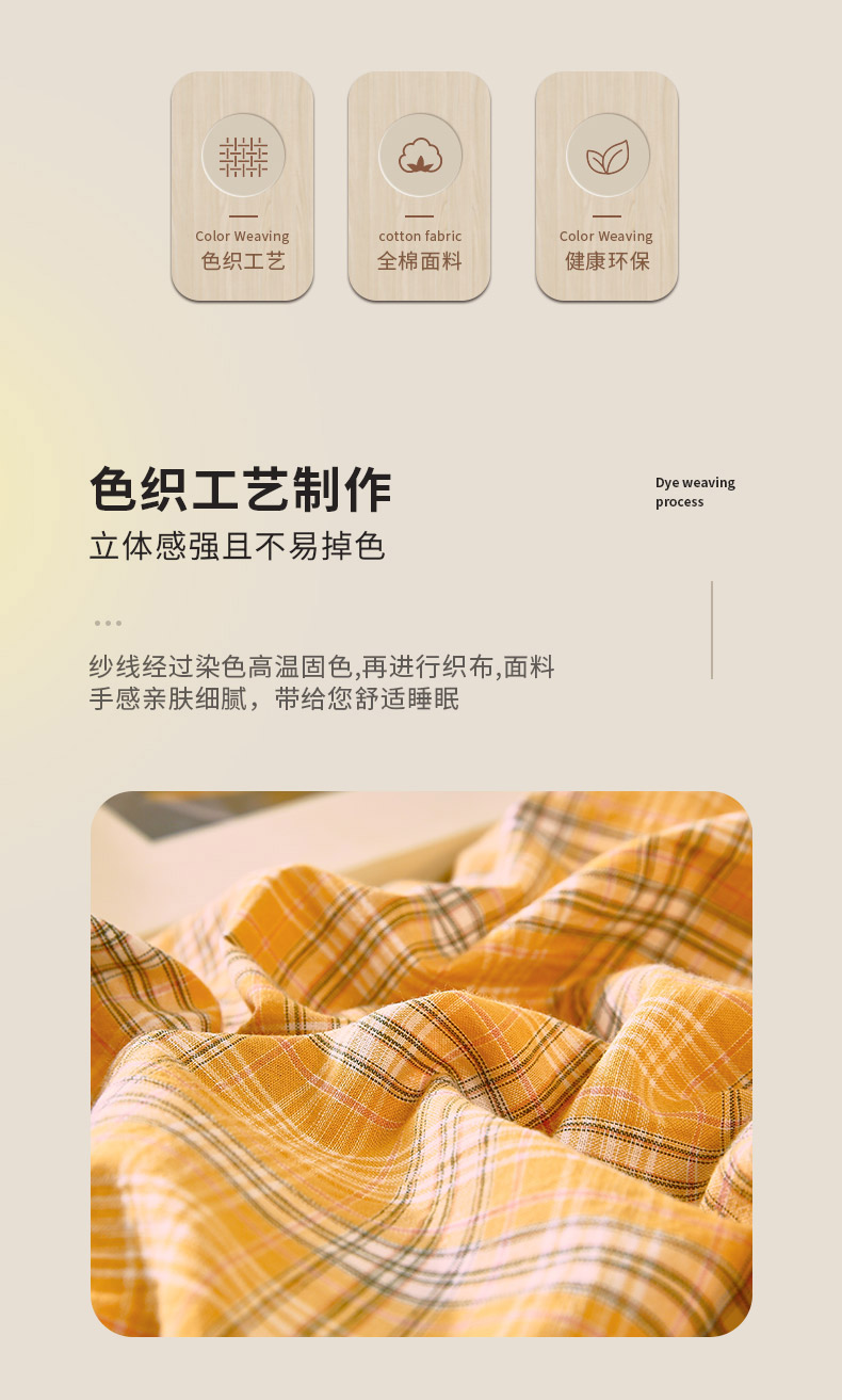 商品名称:春皖家纺 2026新款色织AB版水洗棉三件套四件套单品系列(单枕套风格一) 素雅-黄条