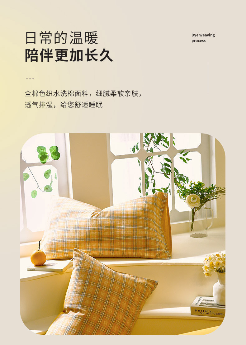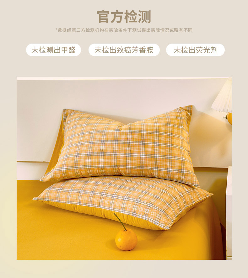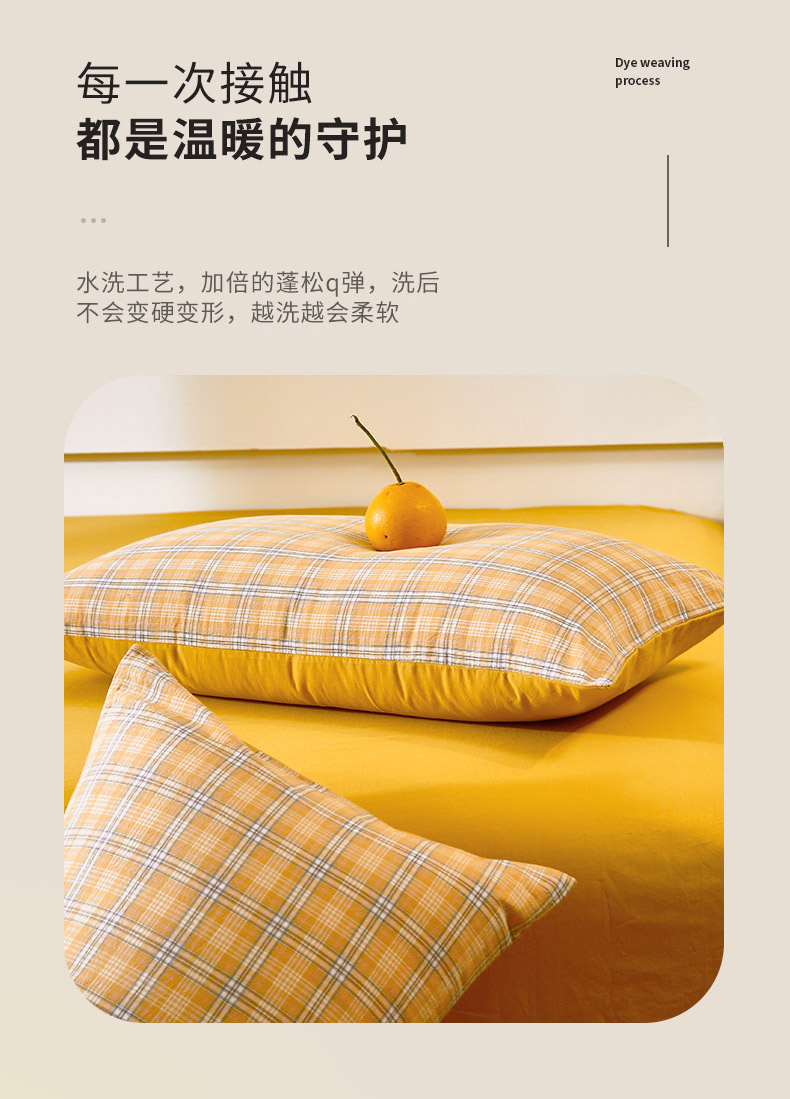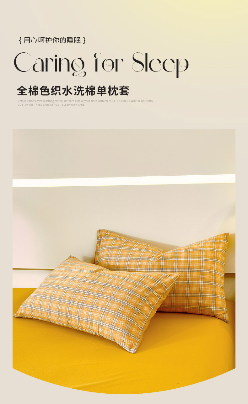 春皖家纺 2026新款色织AB版水洗棉三件套四件套单品系列(单枕套风格一) 素雅-黄条