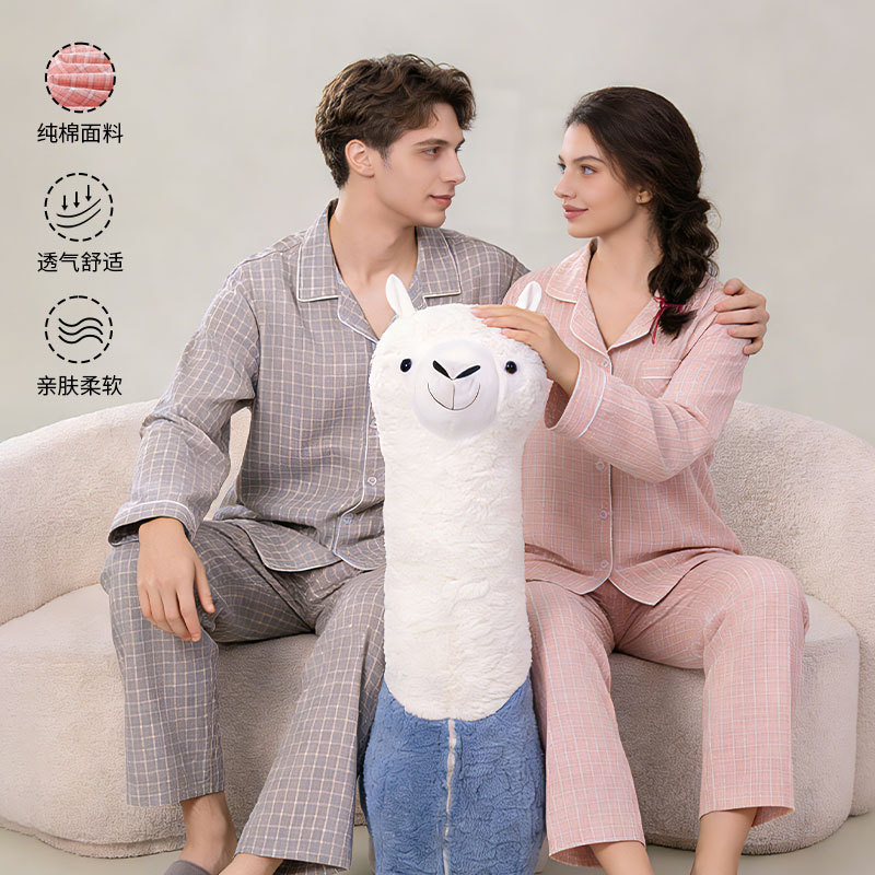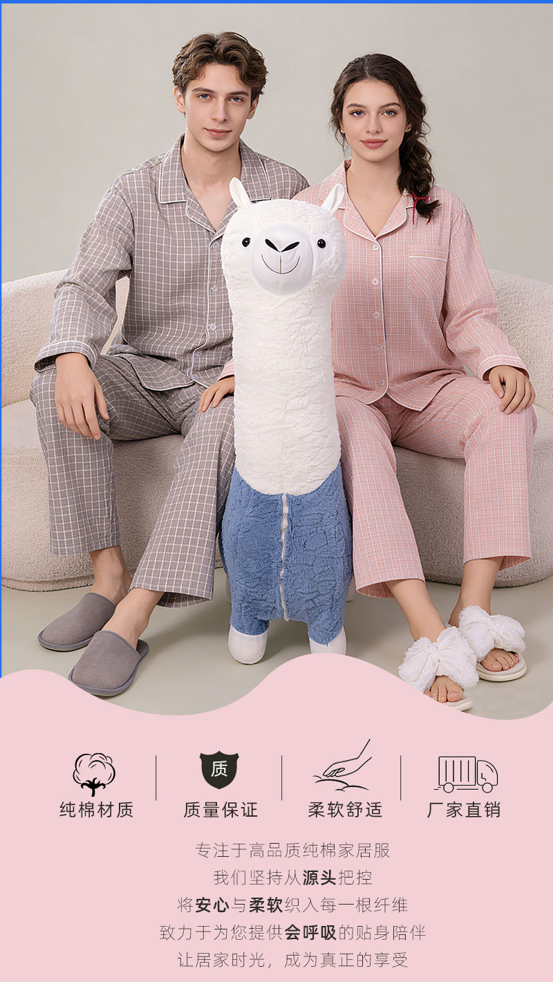 商品名称:(总)洛兰沙家居馆 新品纯棉睡衣女 水洗棉纯棉长袖春秋夏薄款长袖男情侣格子家居服