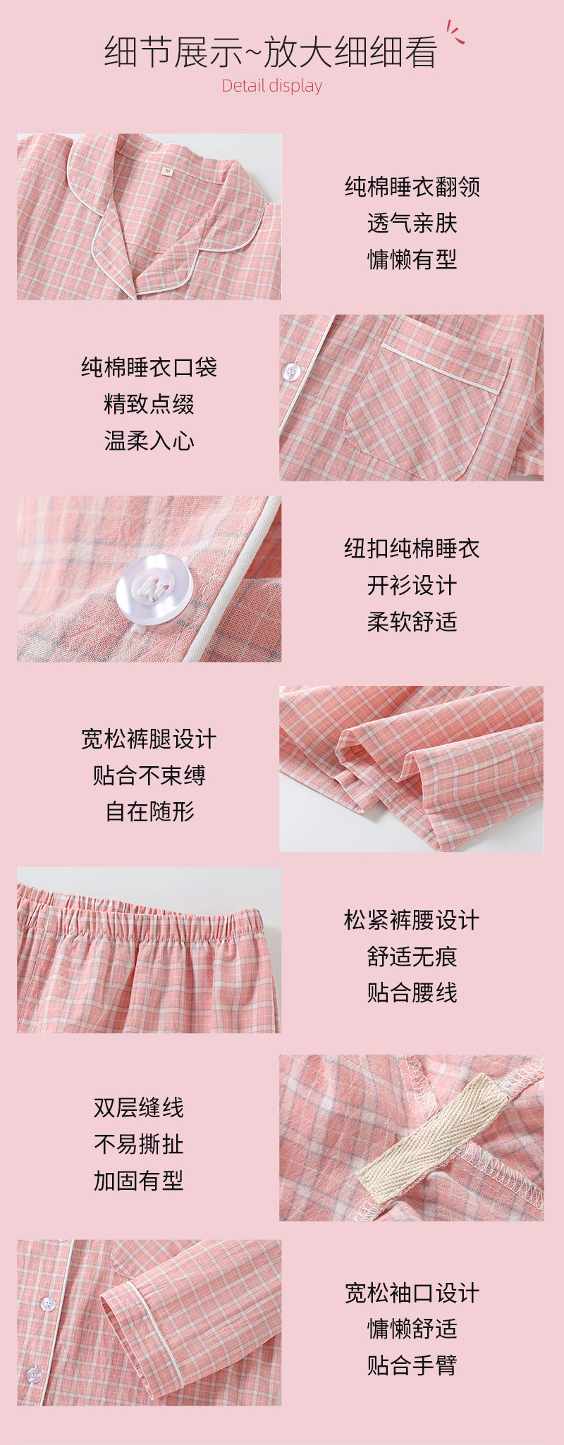 (总)洛兰沙家居馆 日系无印风品质睡衣女纯棉长袖春秋薄长袖男情侣格子可外穿家居服,女款粉白,女款黑白,女款灰白,男款黑白,男款灰白