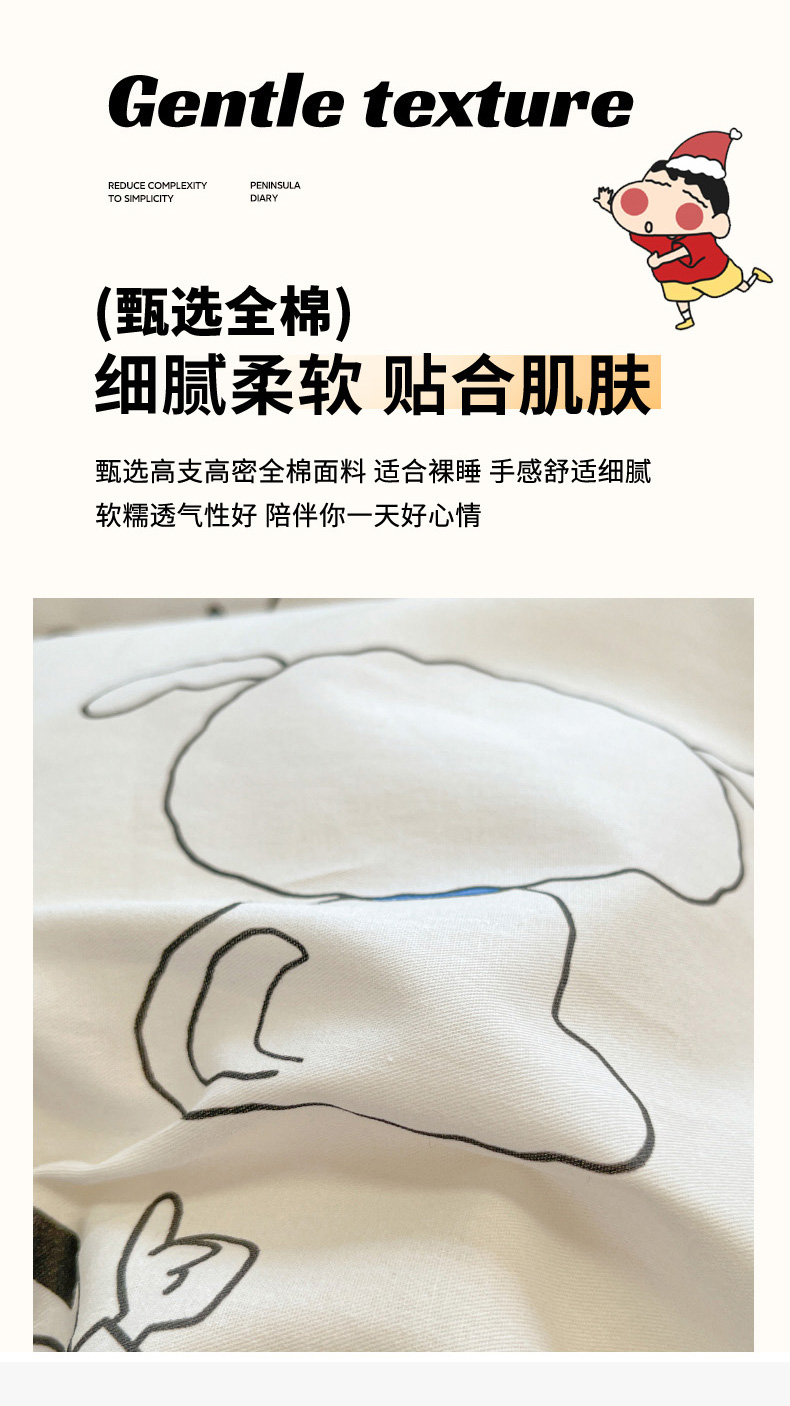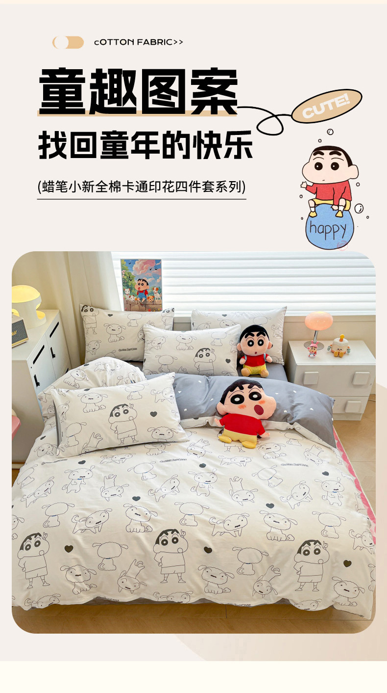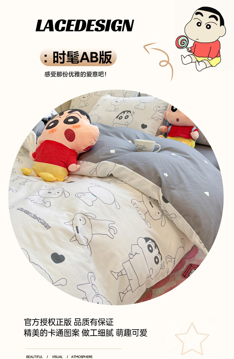当前位置: 91家纺网 > 商品网购 > 床品套件 > 四件套 > 全棉普通四件套 > 暮思家居 2026春夏新款正版授权蜡笔小新全棉纯棉四件套系列 黑白小新
