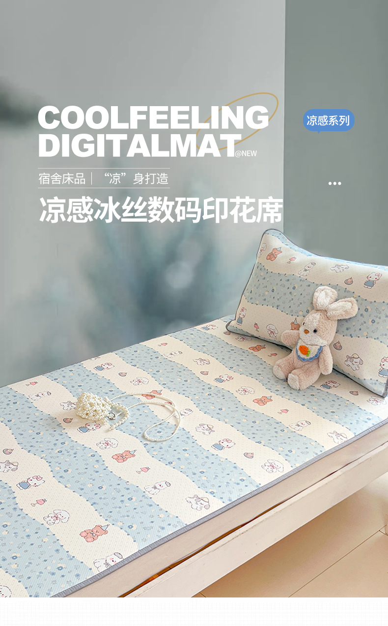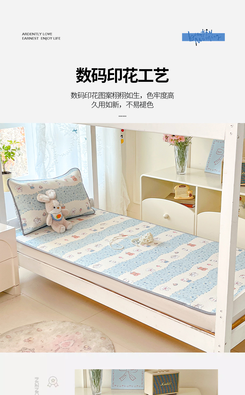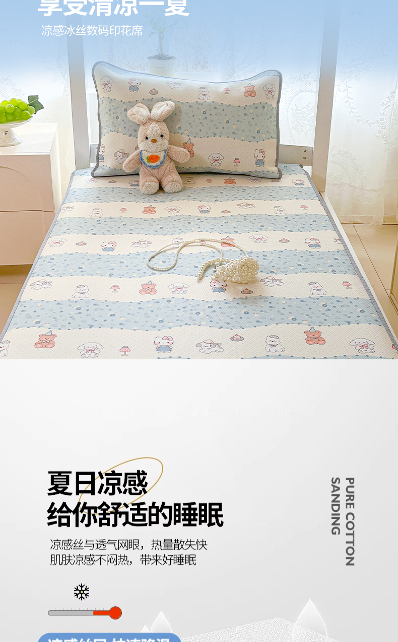 川悦生活 2026新款凉感冰丝席小阪凉感冰丝数码印花席学生床 席花田乐园