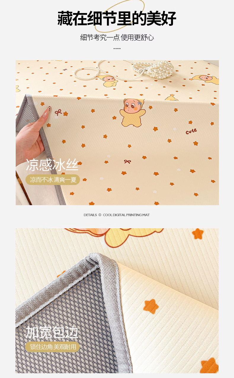 川悦生活 2026新款凉感冰丝席小阪凉感冰丝数码印花席学生床 席恰星星