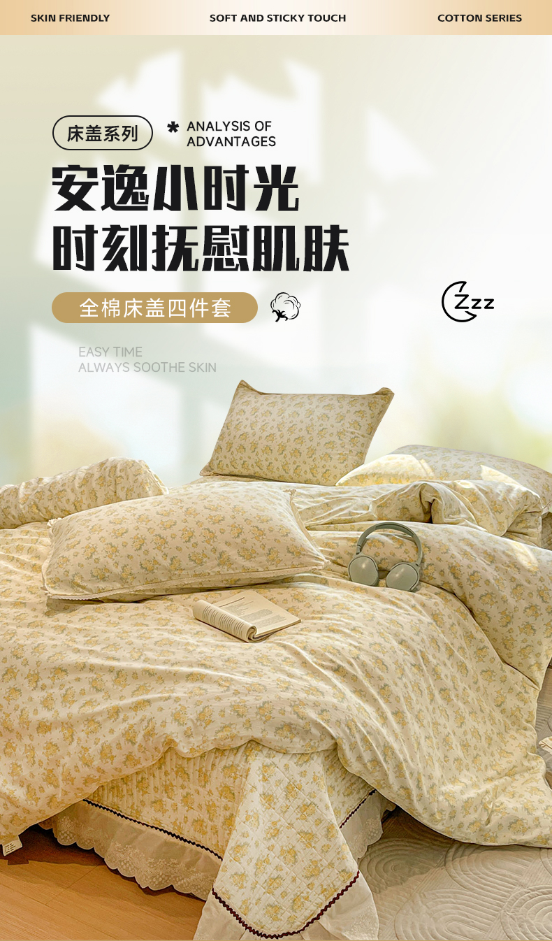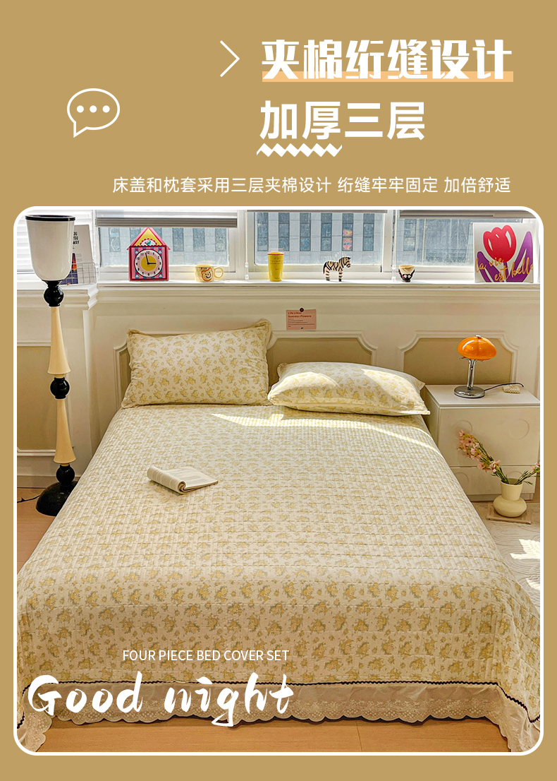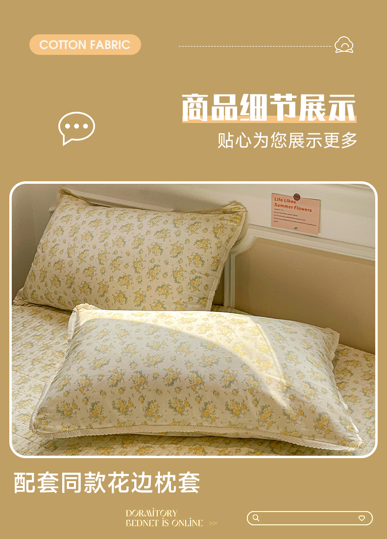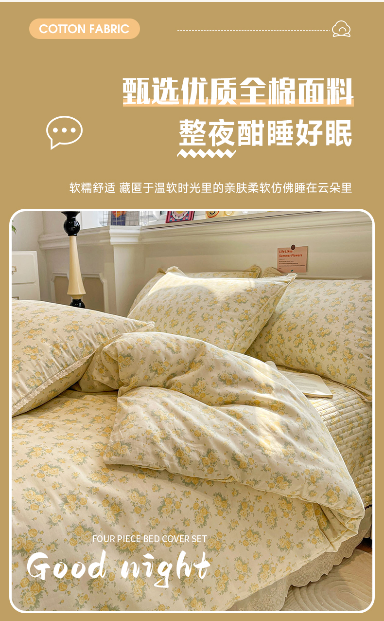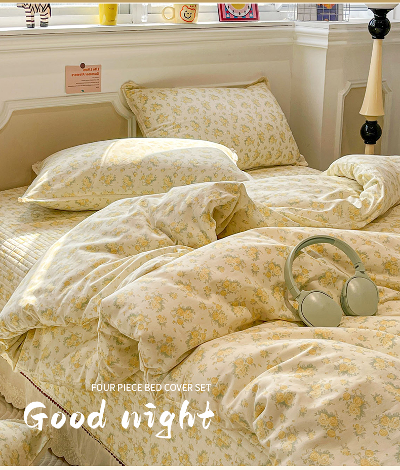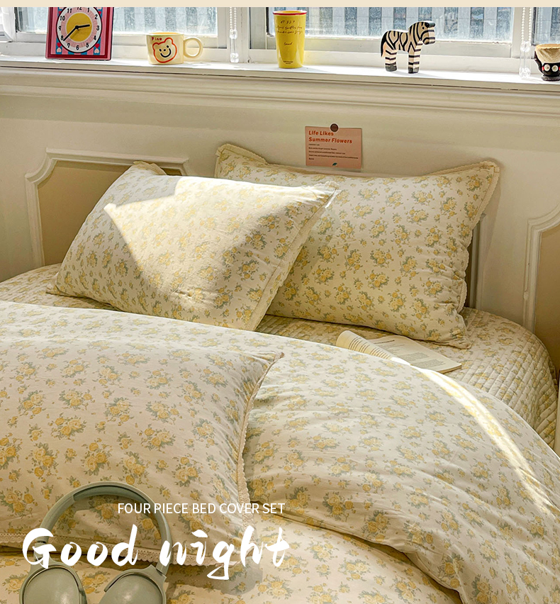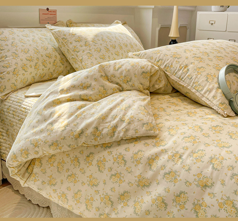 当前位置: 91家纺网 > 商品网购 > 床品套件 > 四件套 > 全棉普通四件套 > 娜朵家纺 2026新款全棉印花床盖四件套 晴天小花-黄