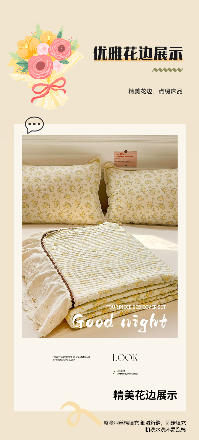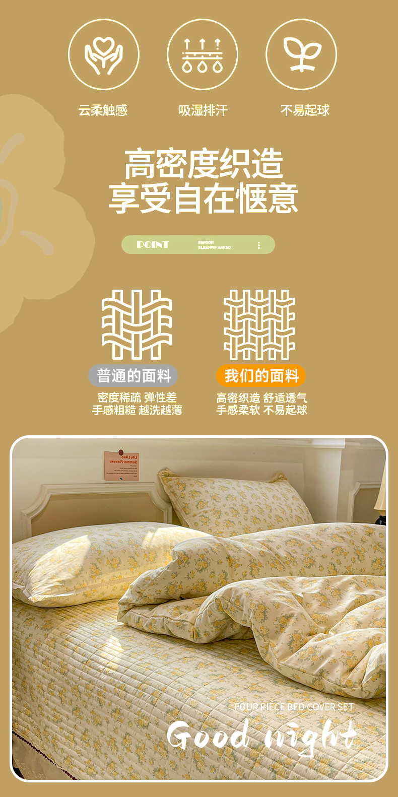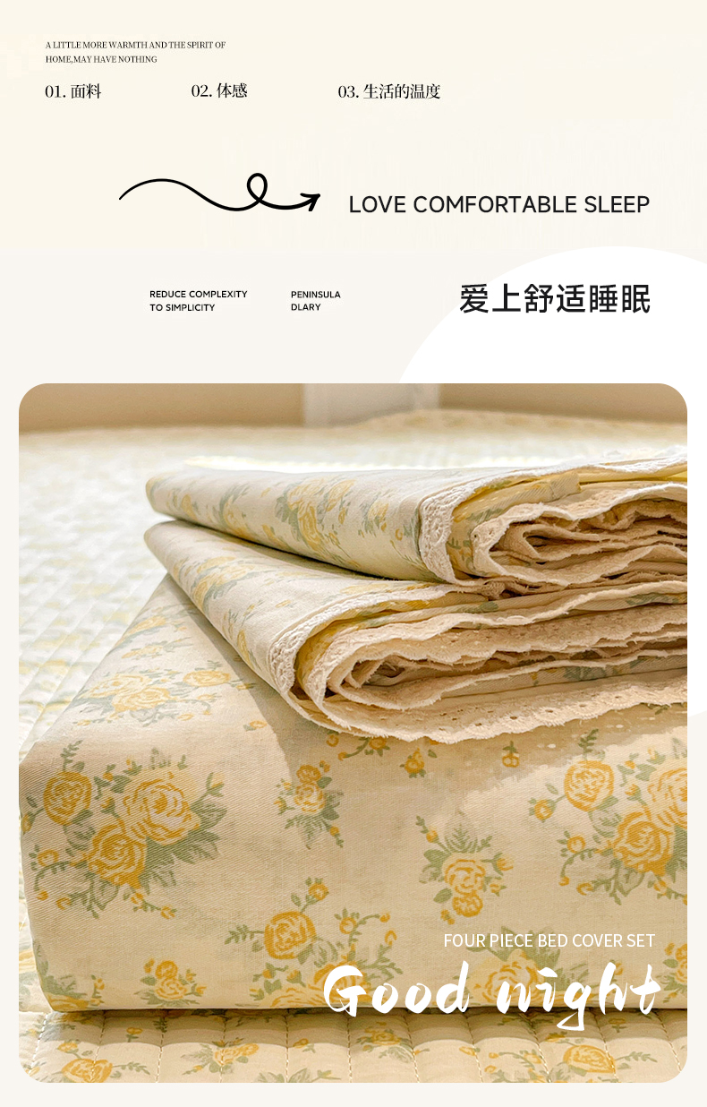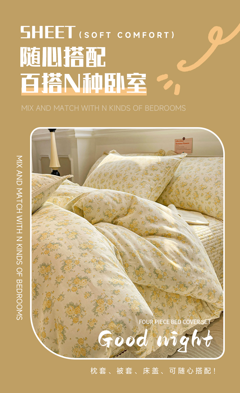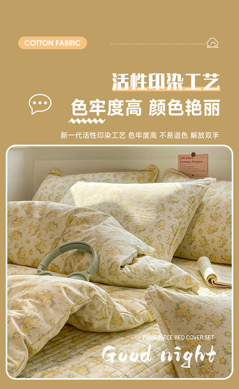 当前位置: 91家纺网 > 商品网购 > 床品套件 > 四件套 > 全棉普通四件套 > 娜朵家纺 2026新款全棉印花床盖四件套 晴天小花-黄