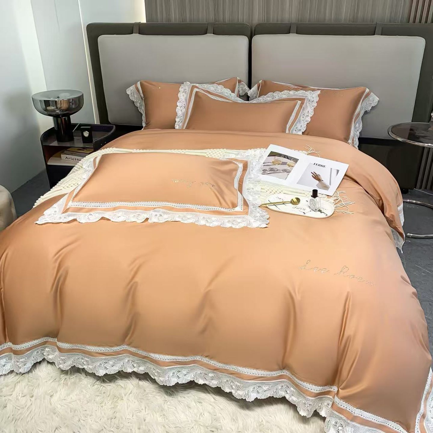 edra 2026新款纯棉长绒棉轻奢花边床盖款四件套-维多利亚 维多利亚-橘