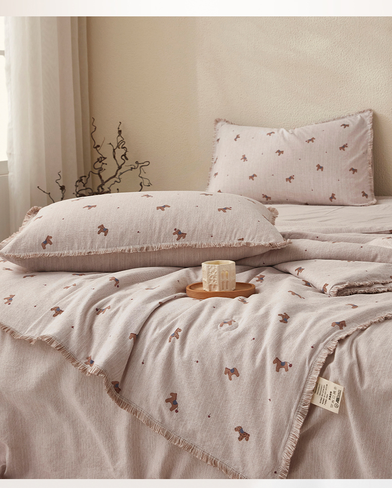 • 91家纺网 家纺一手货源 找家纺 网客家纺 2026新款提花色织麻夏被四件套 宝丽咖