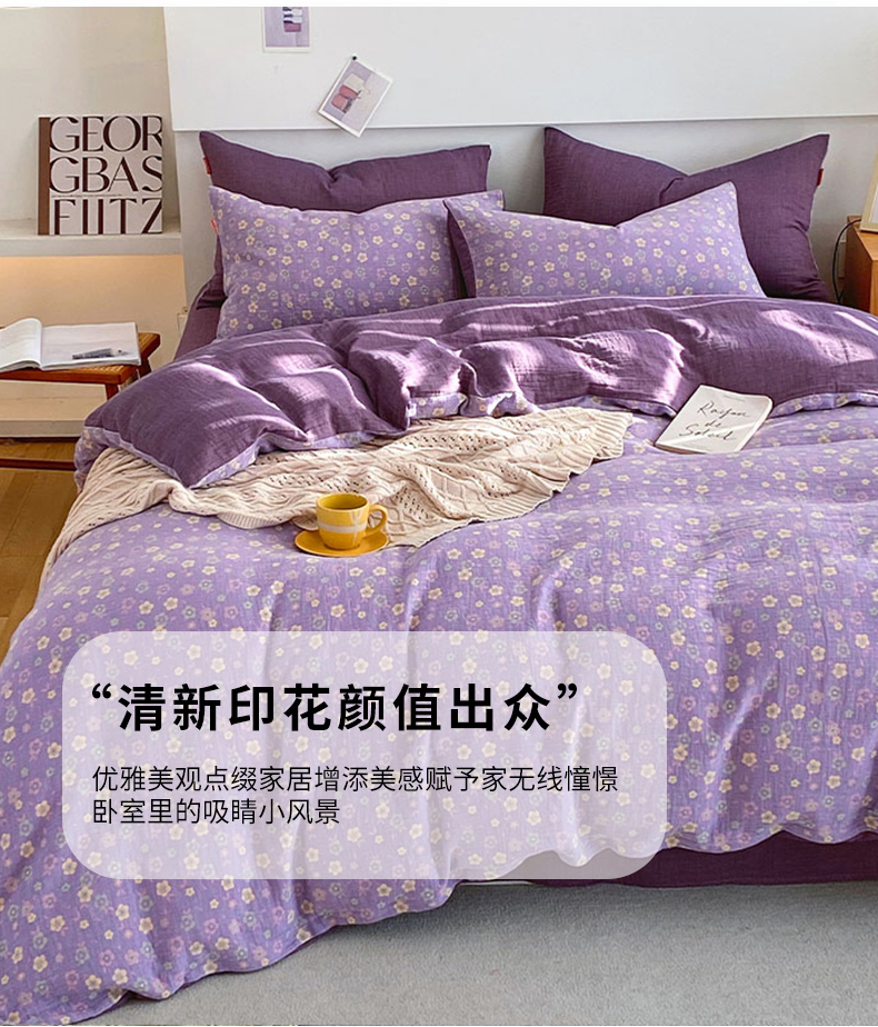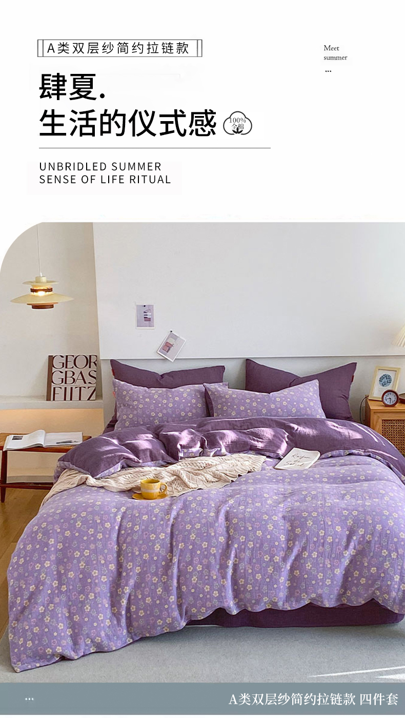 当前位置: 91家纺网 > 商品网购 > 床品套件 > 四件套 > 全棉普通四件套 > 春皖家纺 2026新款全棉纯棉拉链款双层纱四件套 雪花飘