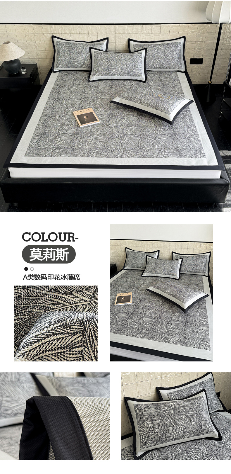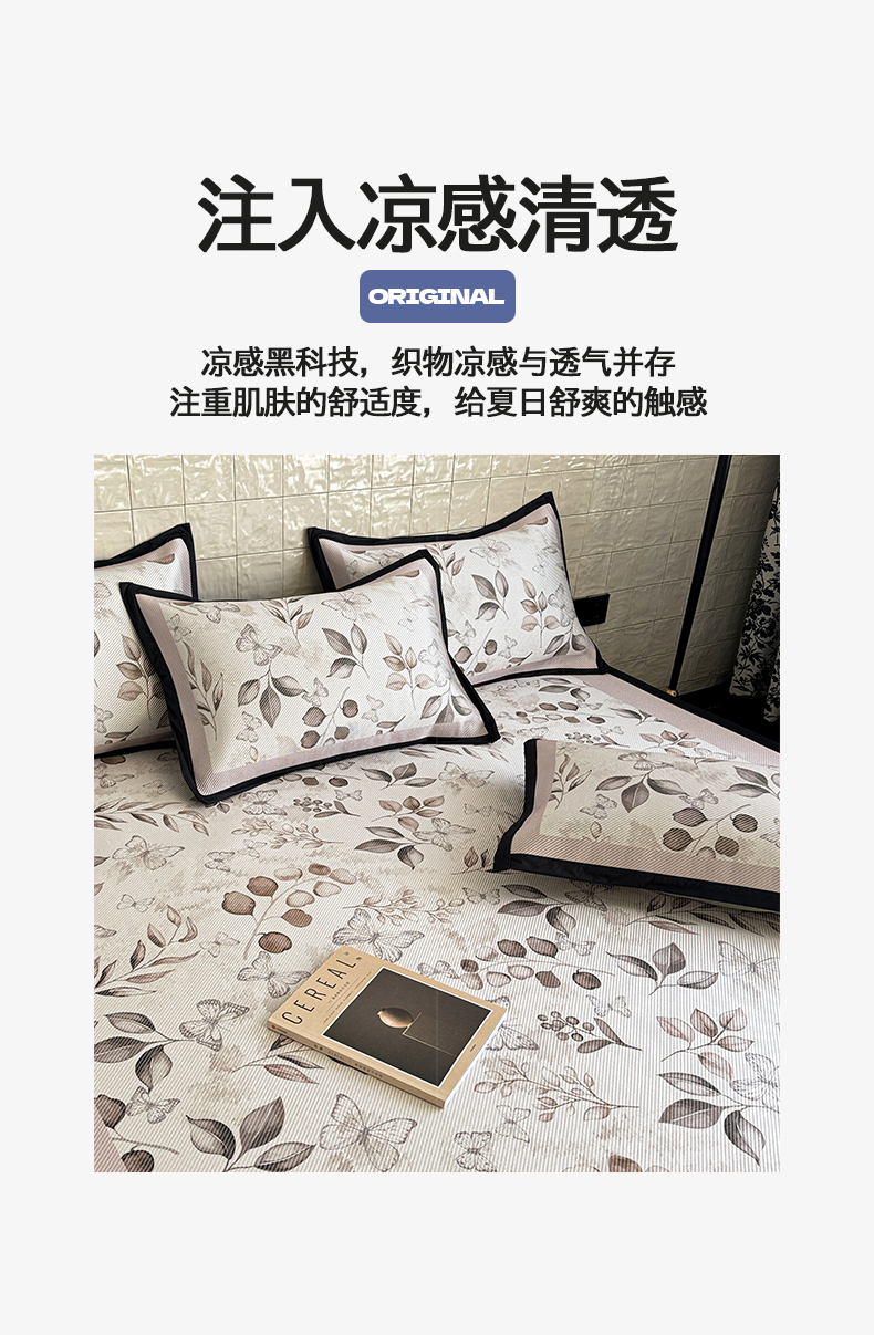 商品名称:懒猫家纺 2026新款800D数码印花大版冰藤凉席 慕妮卡