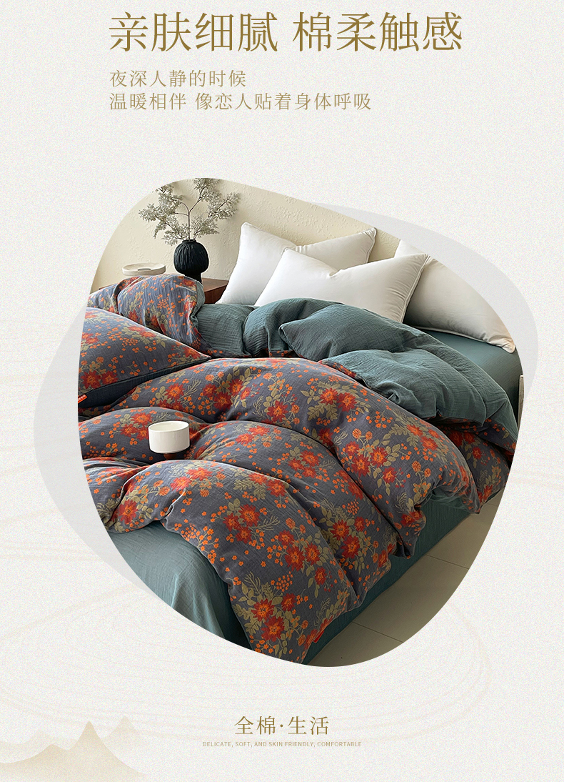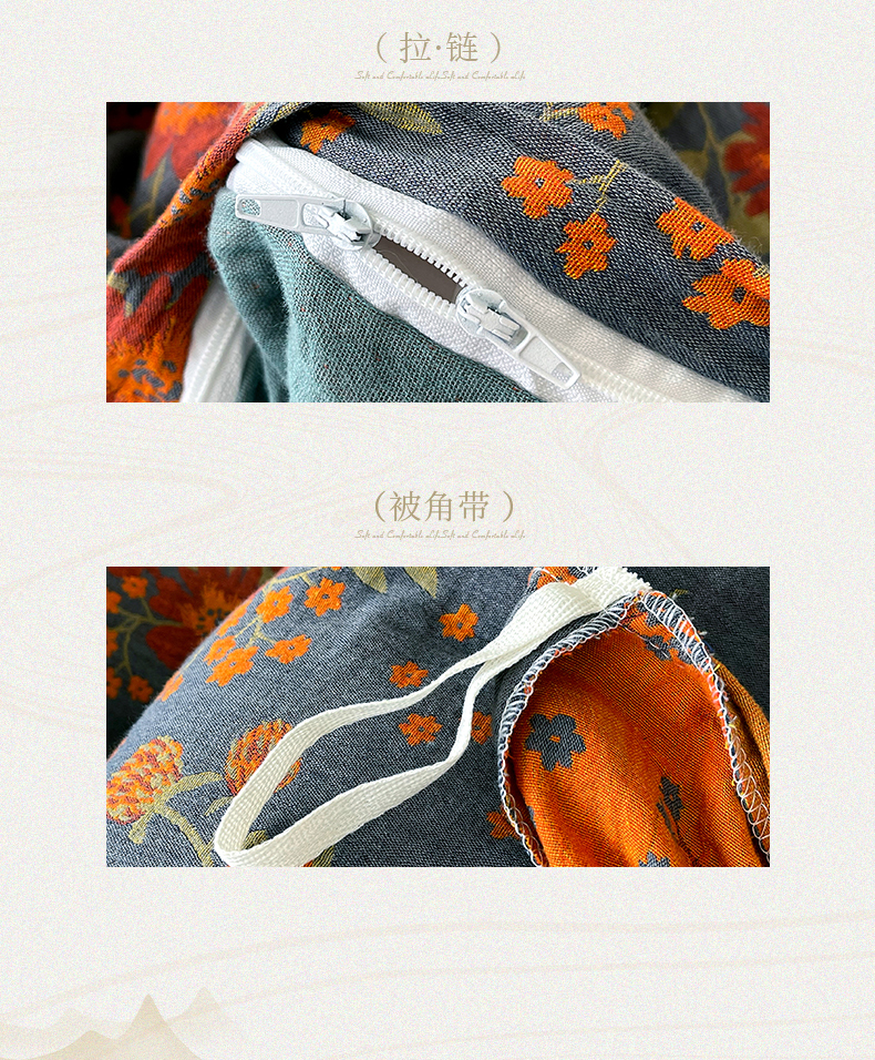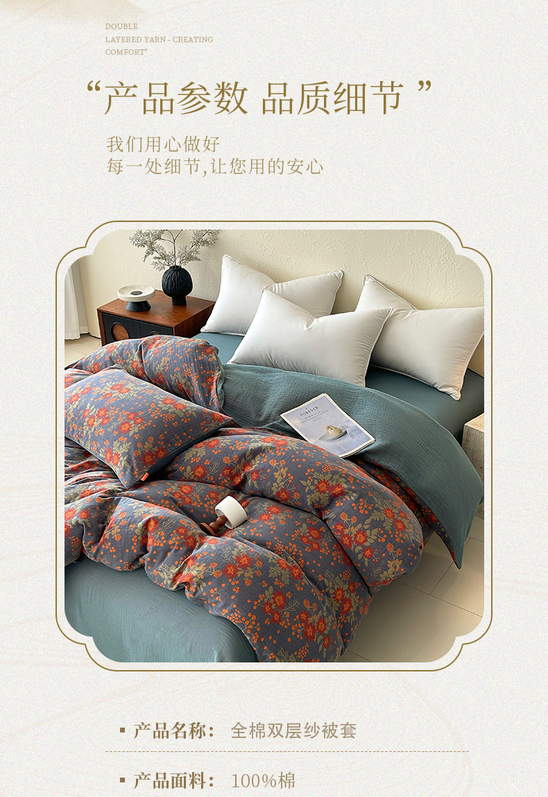 商品名称:春皖家纺 2026新款全棉纯棉拉链款双层纱被套单被套被套单件 月临