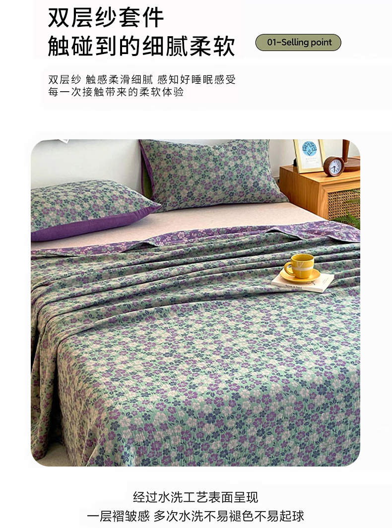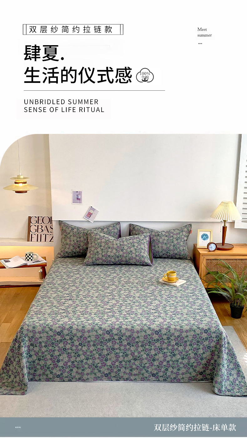 • 91家纺网 家纺一手货源 找家纺 春皖家纺 2026新款全棉纯棉拉链款双层纱床单单床单床单单件 春光灿烂