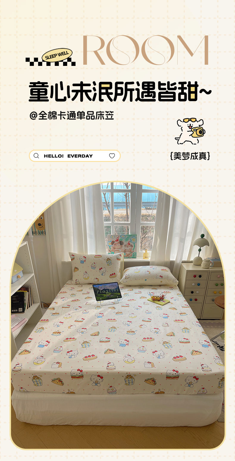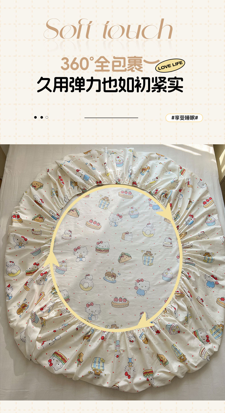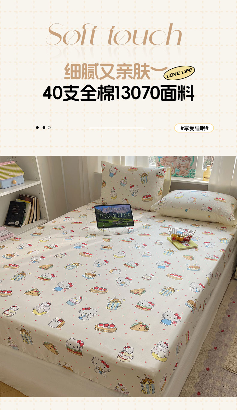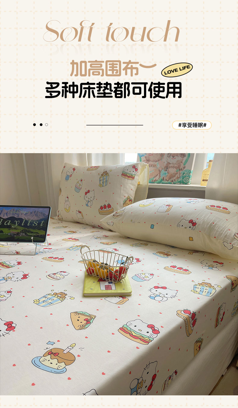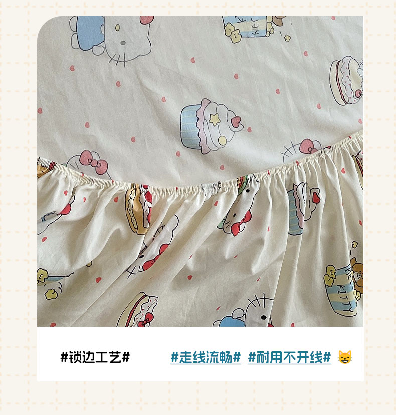 商品名称:六巷胡同 2026新款40支全棉13070INS卡通单品床笠 爱心汉堡喵